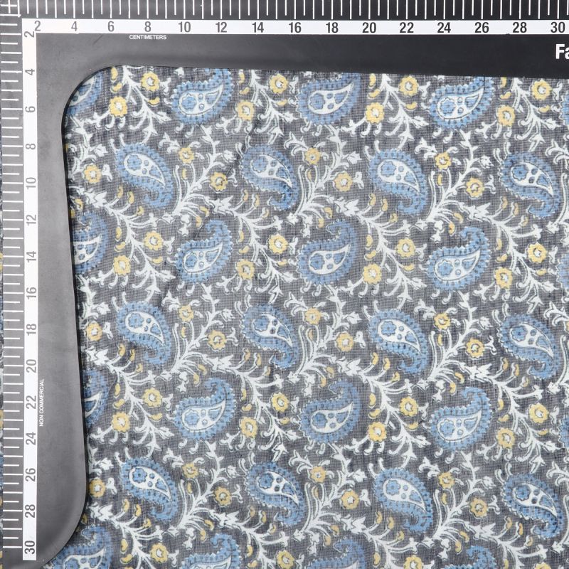Blue And White Paisley Pattern Digital Print Chanderi Fabric