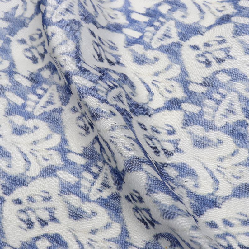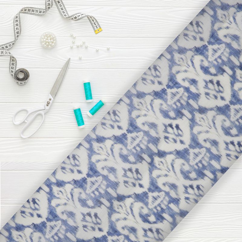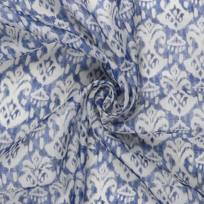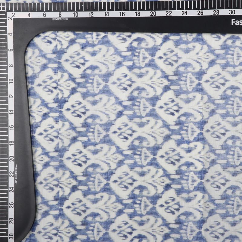 Blue And White Traditional Pattern Digital Print Chanderi Fabric