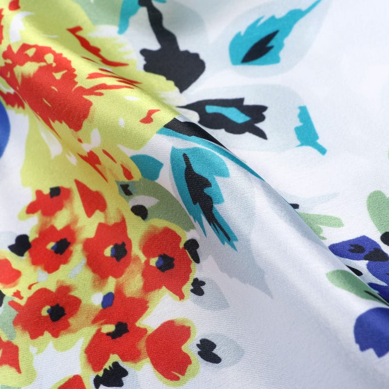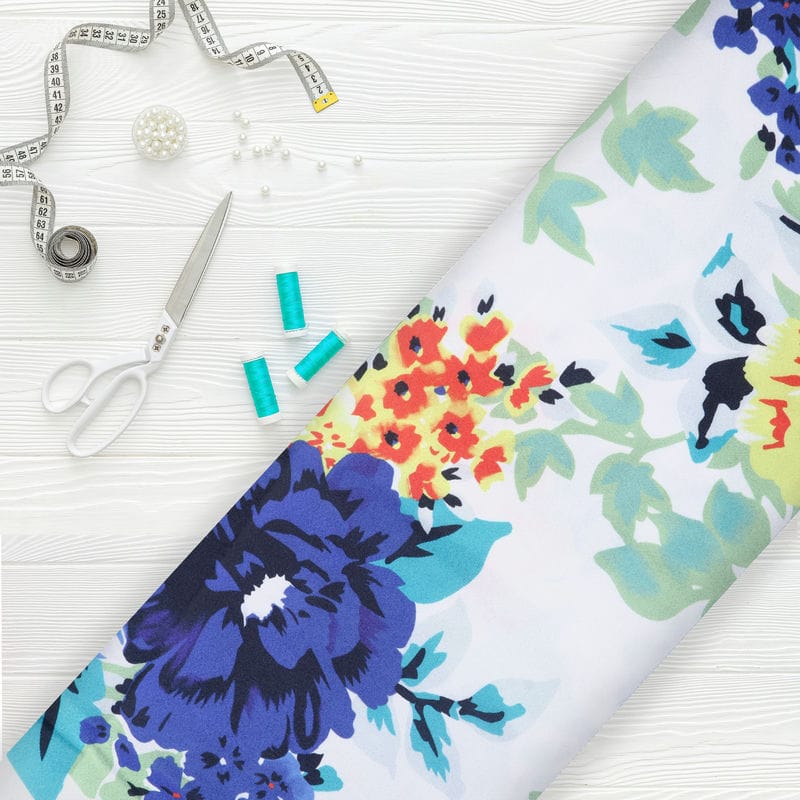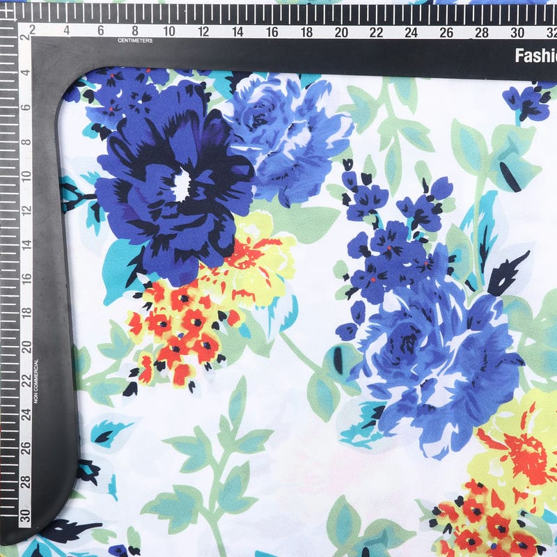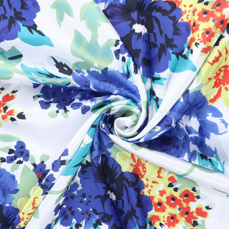 Blue And Yellow Floral Pattern Digital Print Japan Satin Fabric