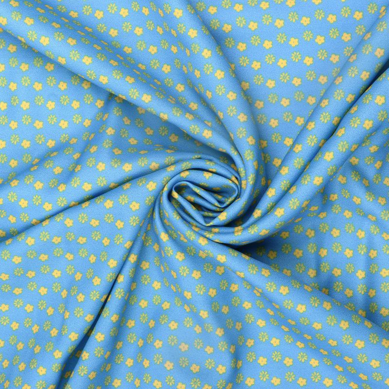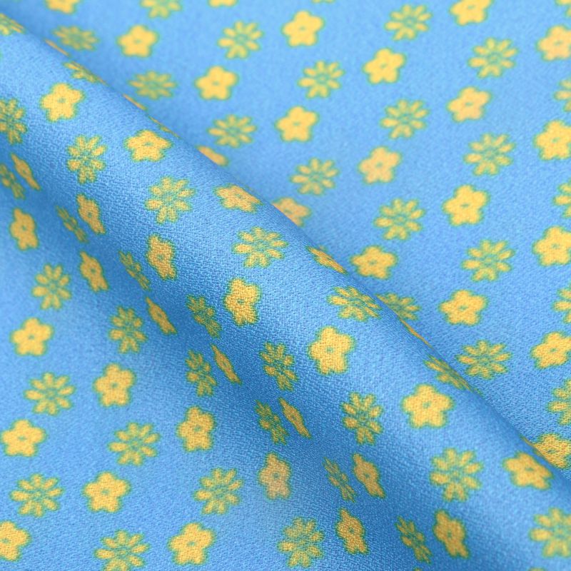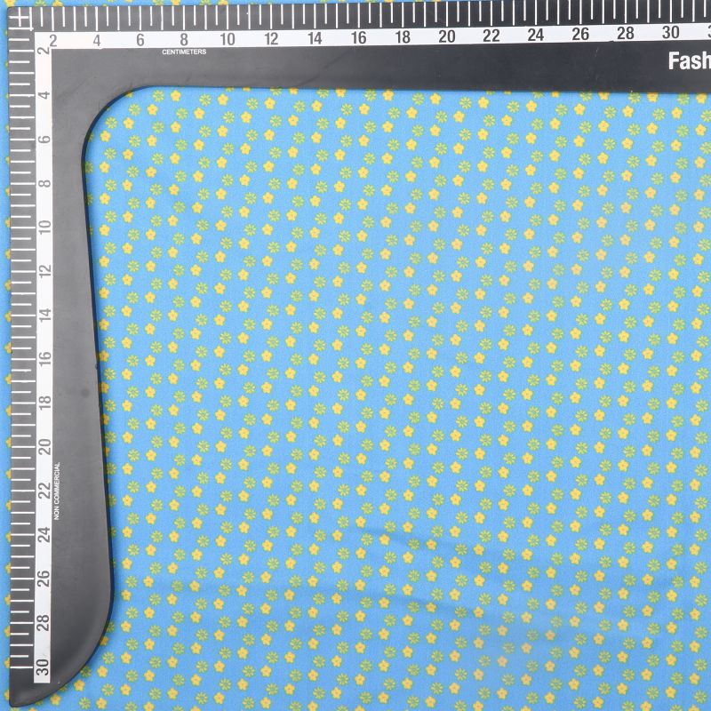 Blue And Yellow Floral Pattern Digital Print Moss Crepe Fabric