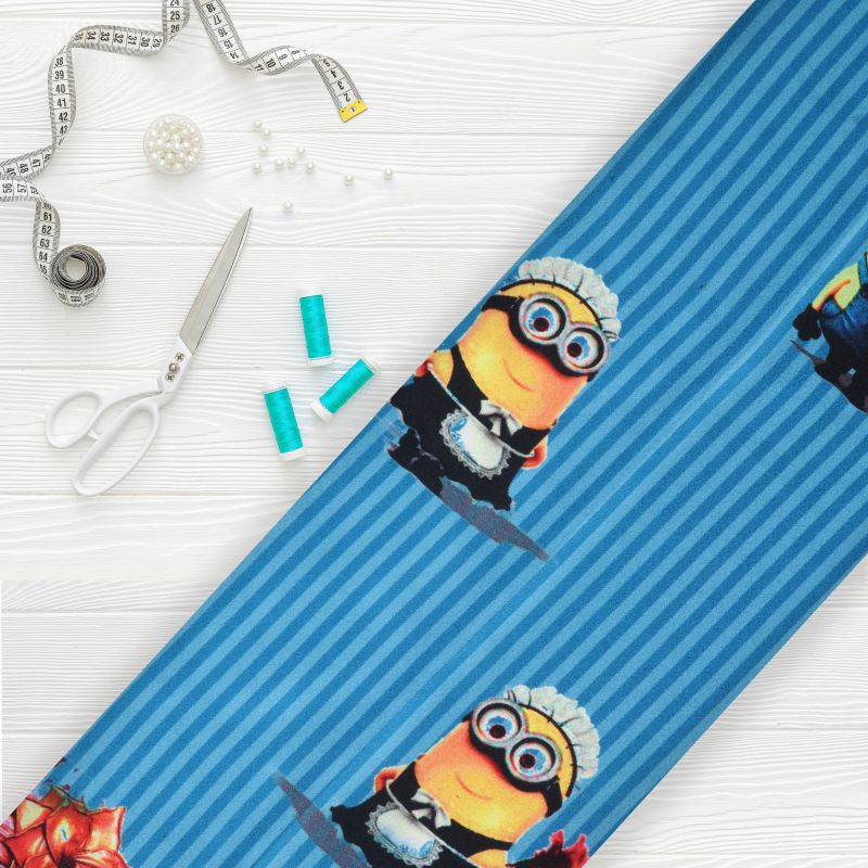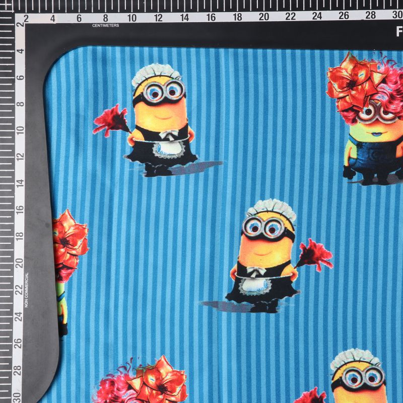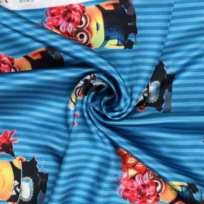 Blue And Yellow Kids Pattern Digital Print Japan Satin Fabric