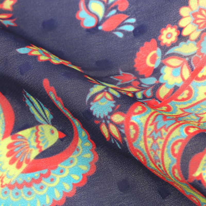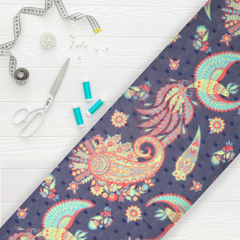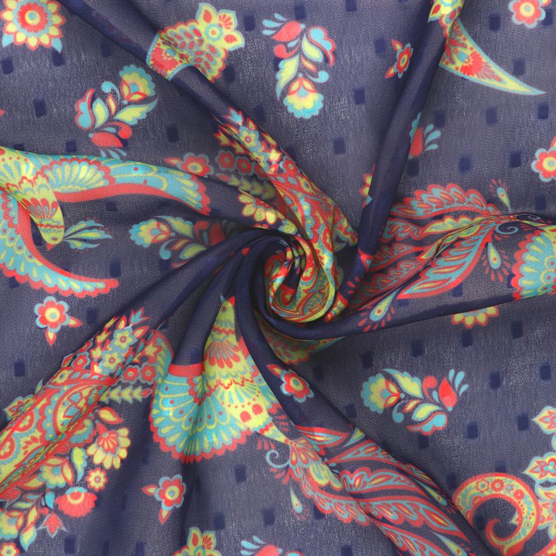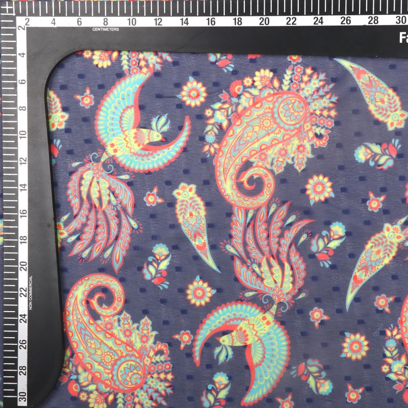 Blue And Yellow Paisley Pattern Digital Print Georgette Dobby Fabric