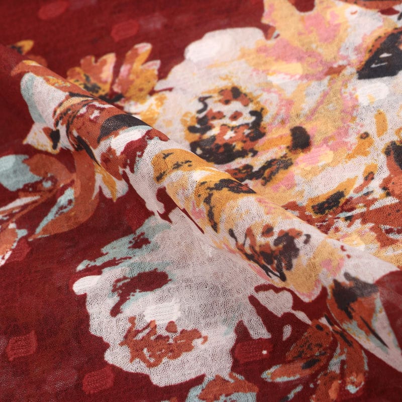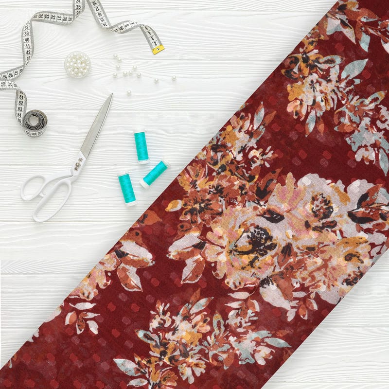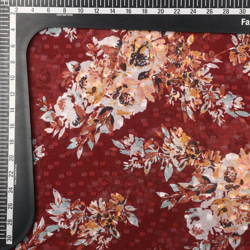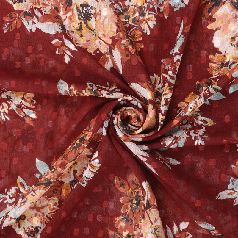 Brown And Yellow Floral Pattern Digital Print Chiffon Dobby Fabric