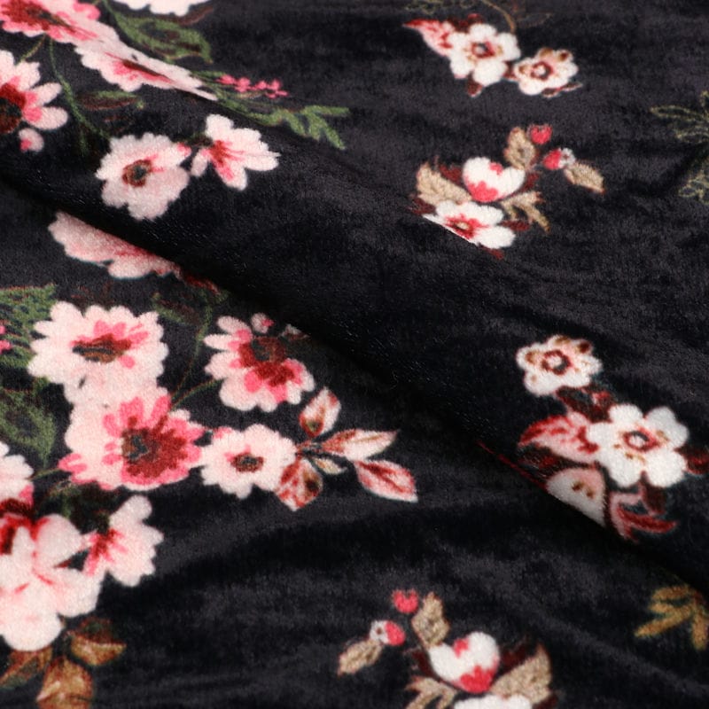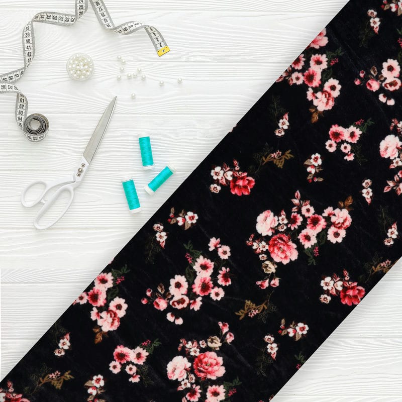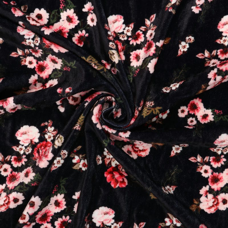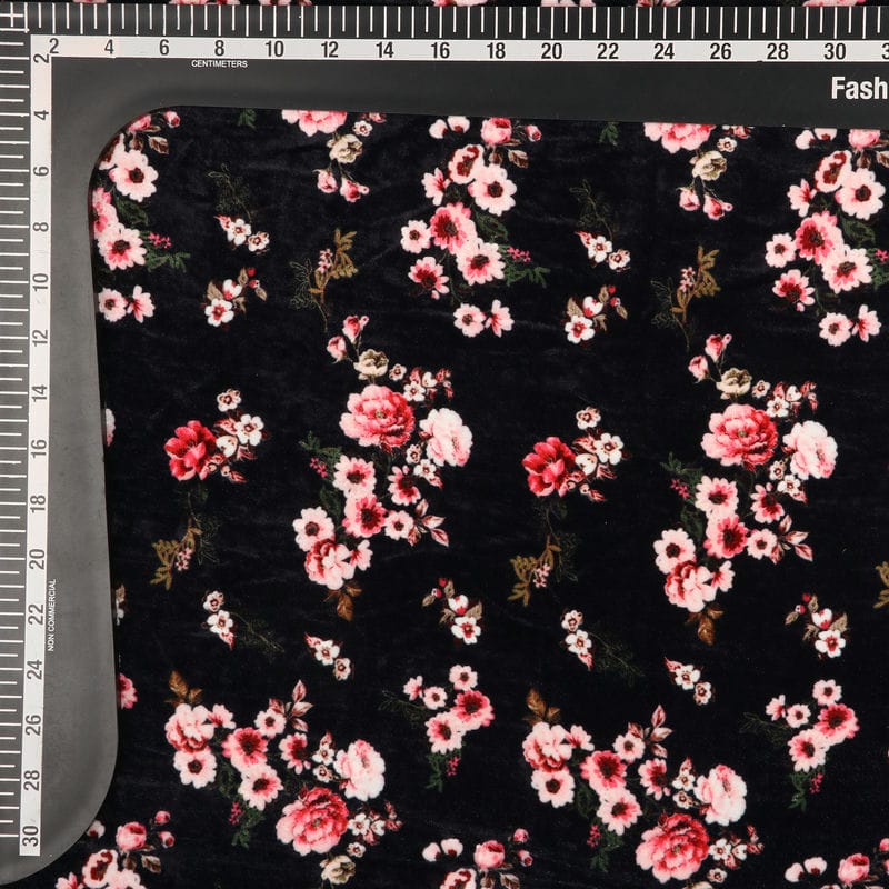 Dark Blue And Baby Pink Floral Pattern Digital Print Velvet Fabric