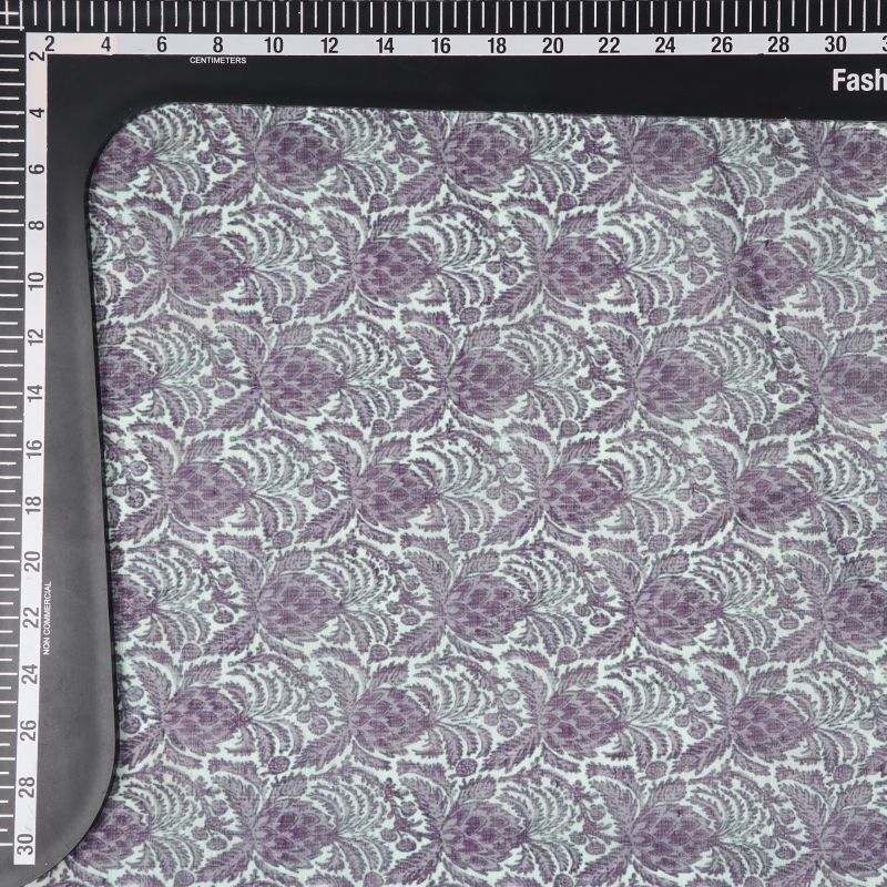 Dark Blue And Mint Green Floral Pattern Digital Print Chanderi Fabric