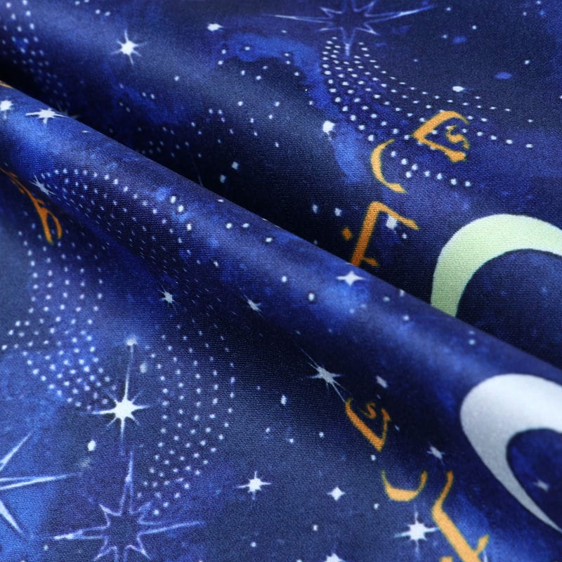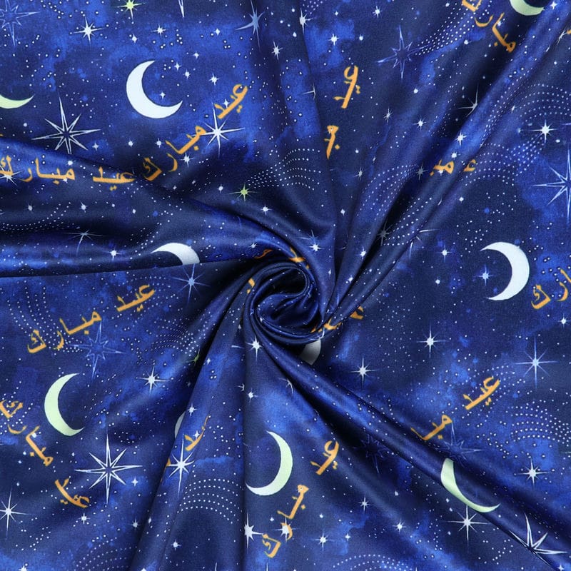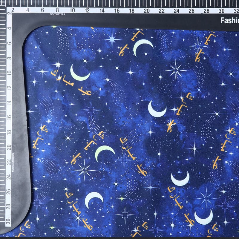 Dark Blue And White Galaxy Pattern Digital Print Silk Satin Fabric