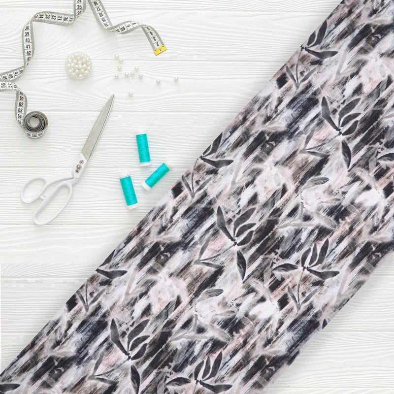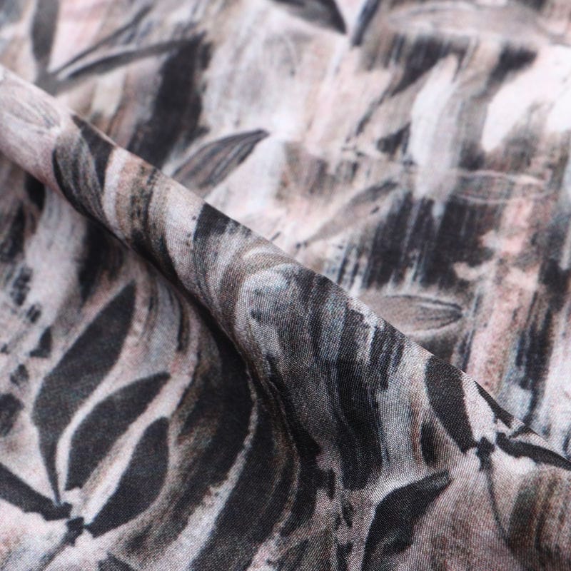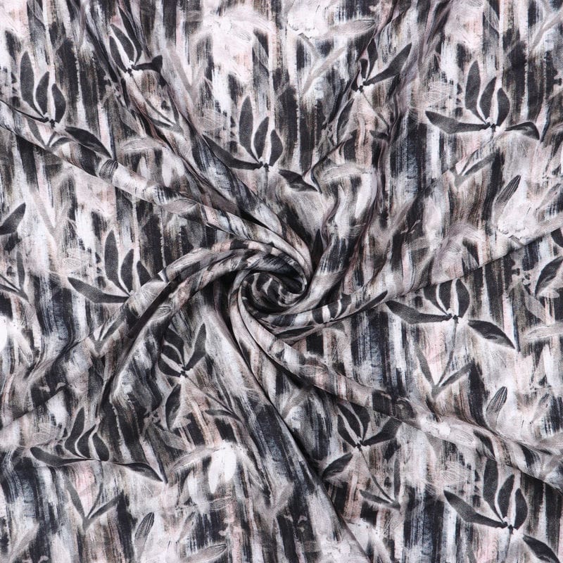 Dark Green And White Leaf Pattern Digital Print Silk Crepe Fabric