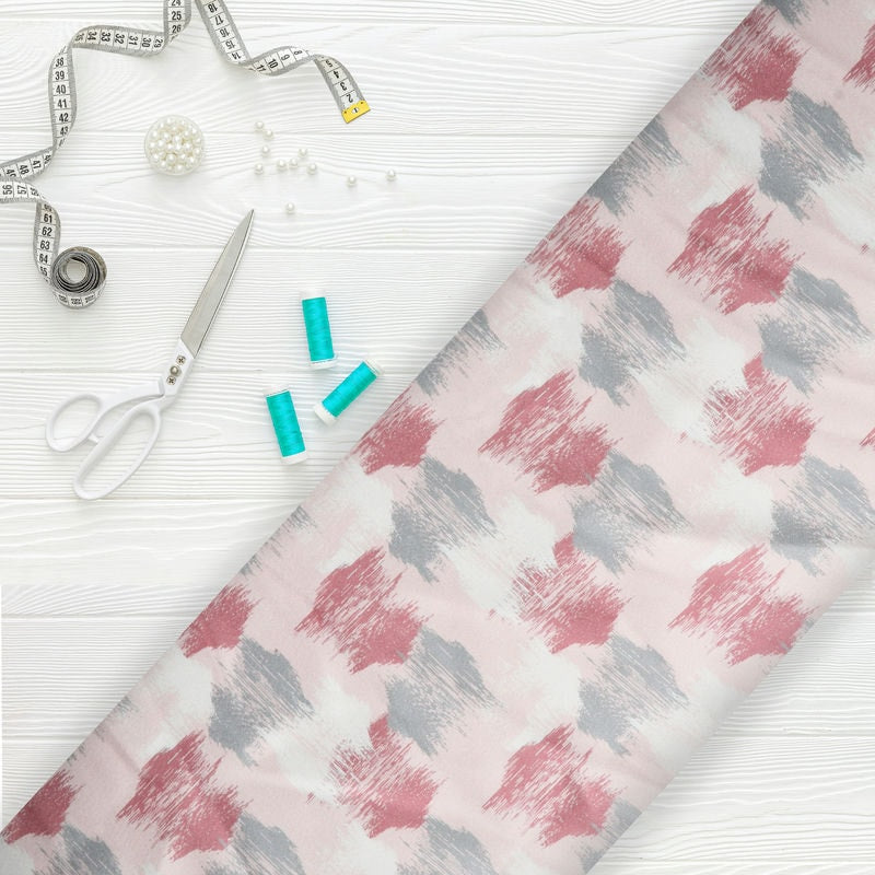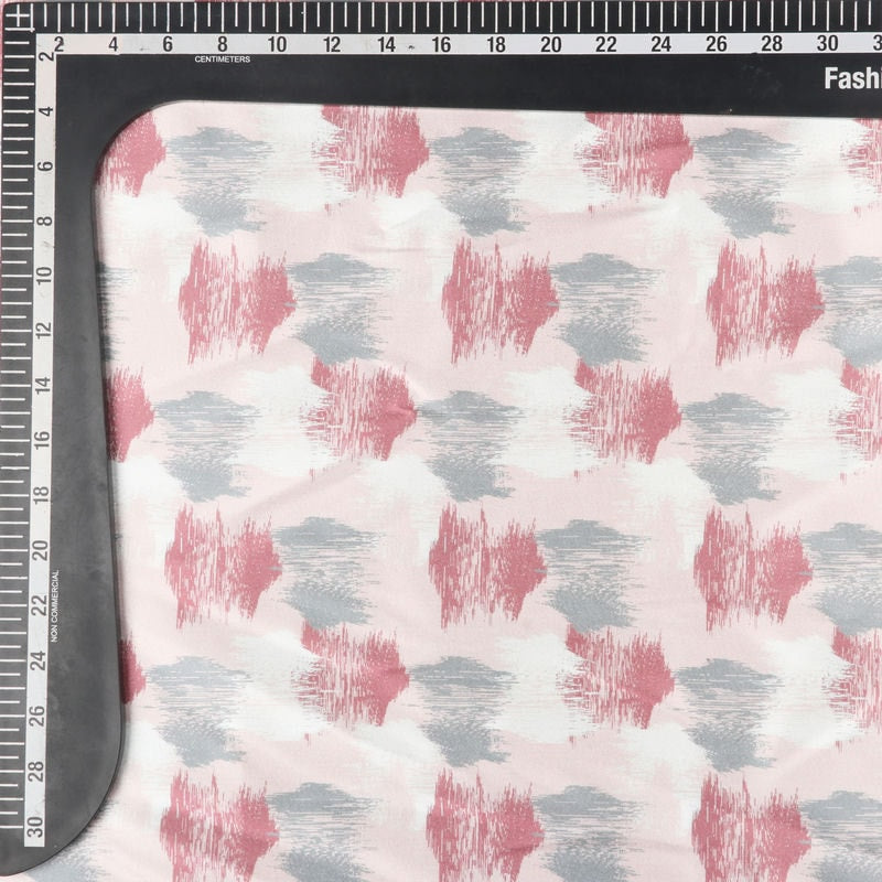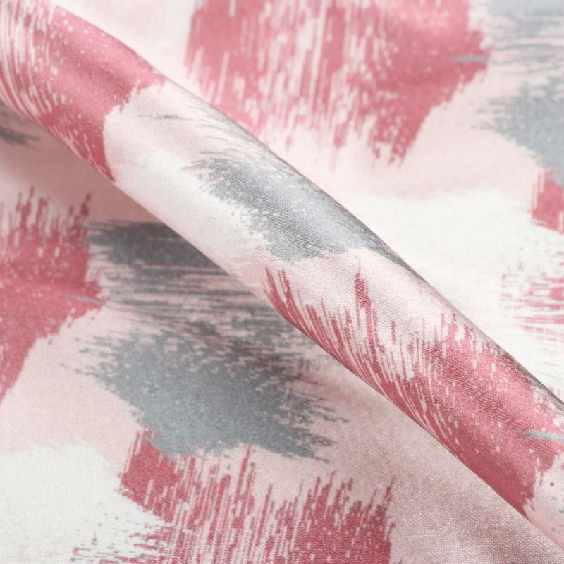 Dark Pink And White Abstract Pattern Digital Print Japan Satin Fabric