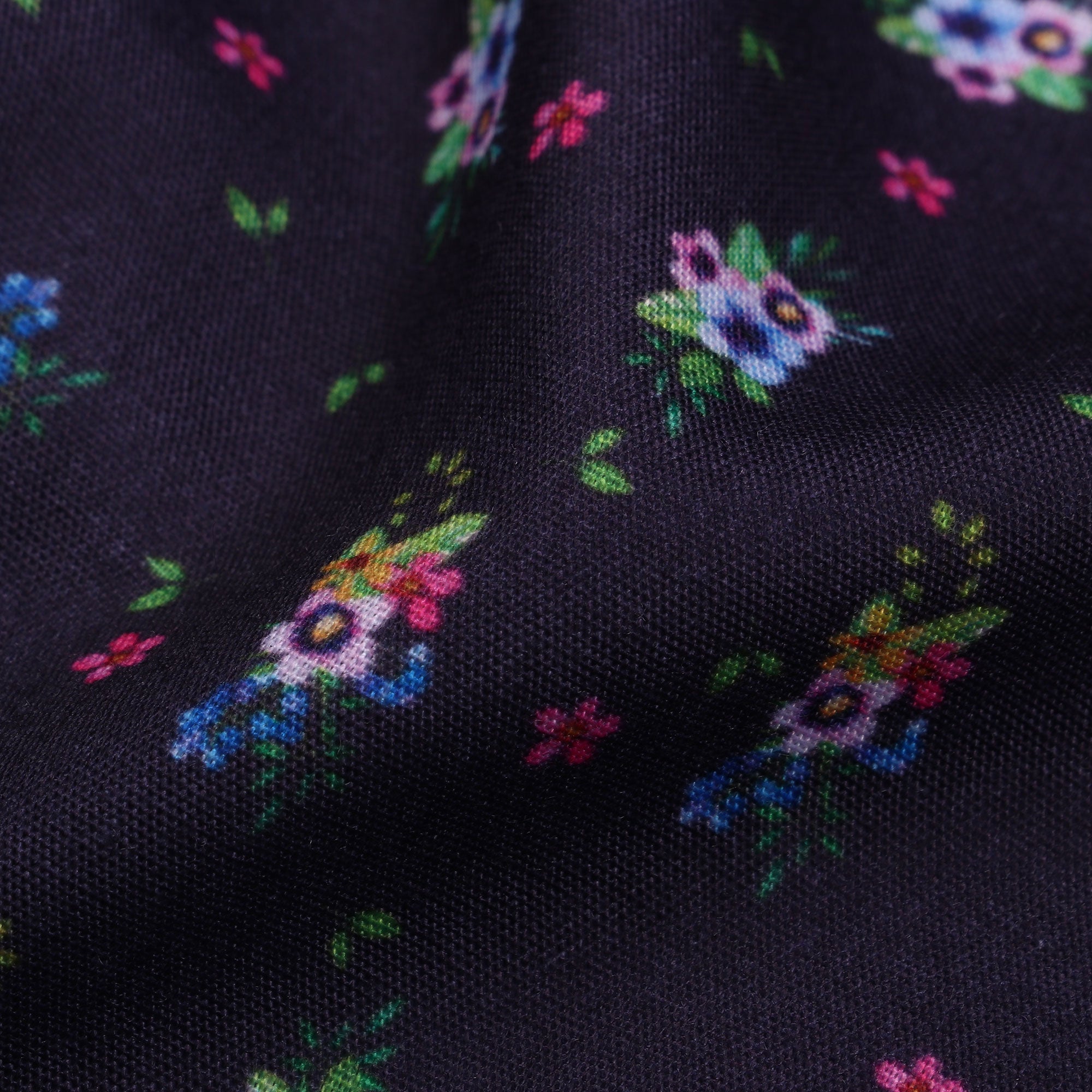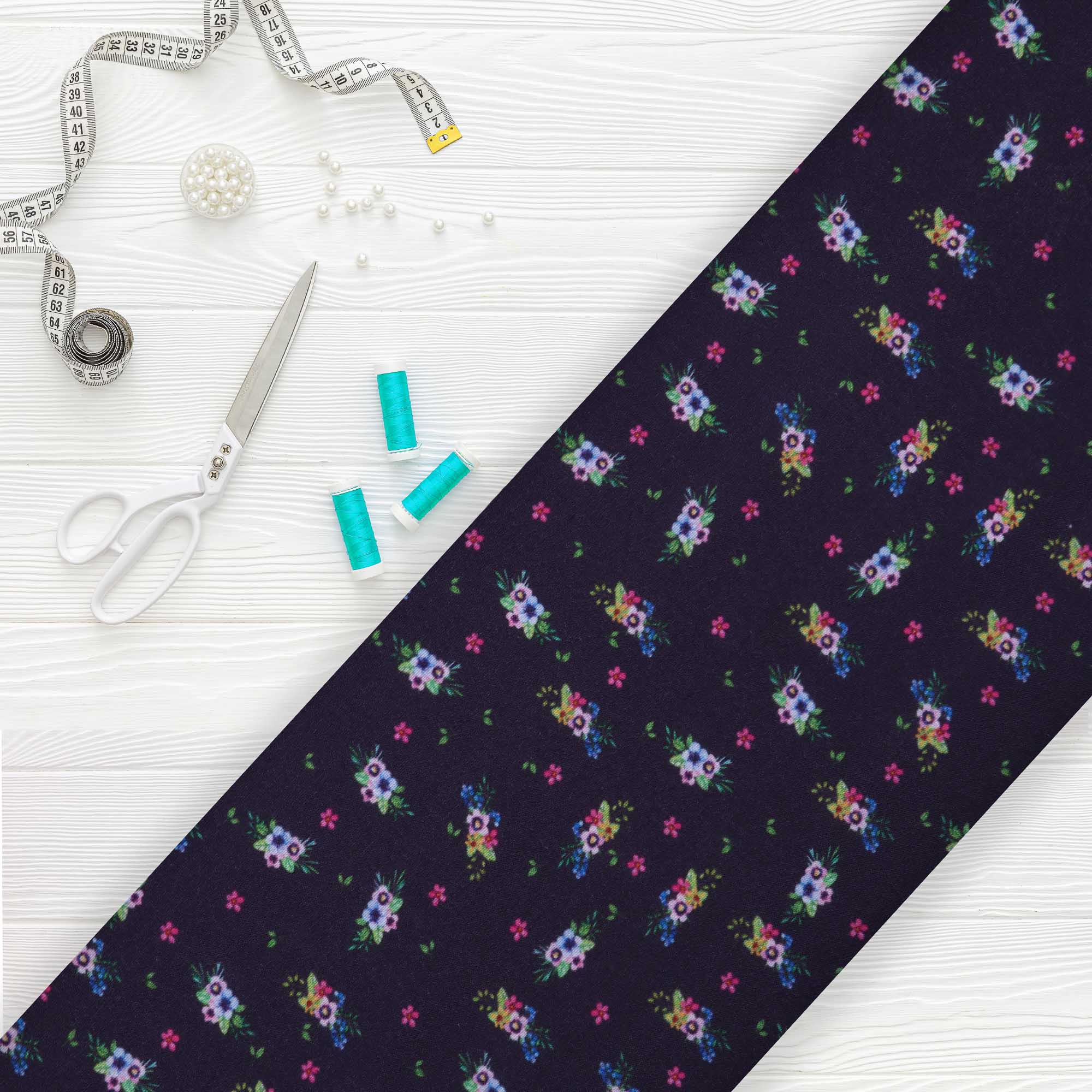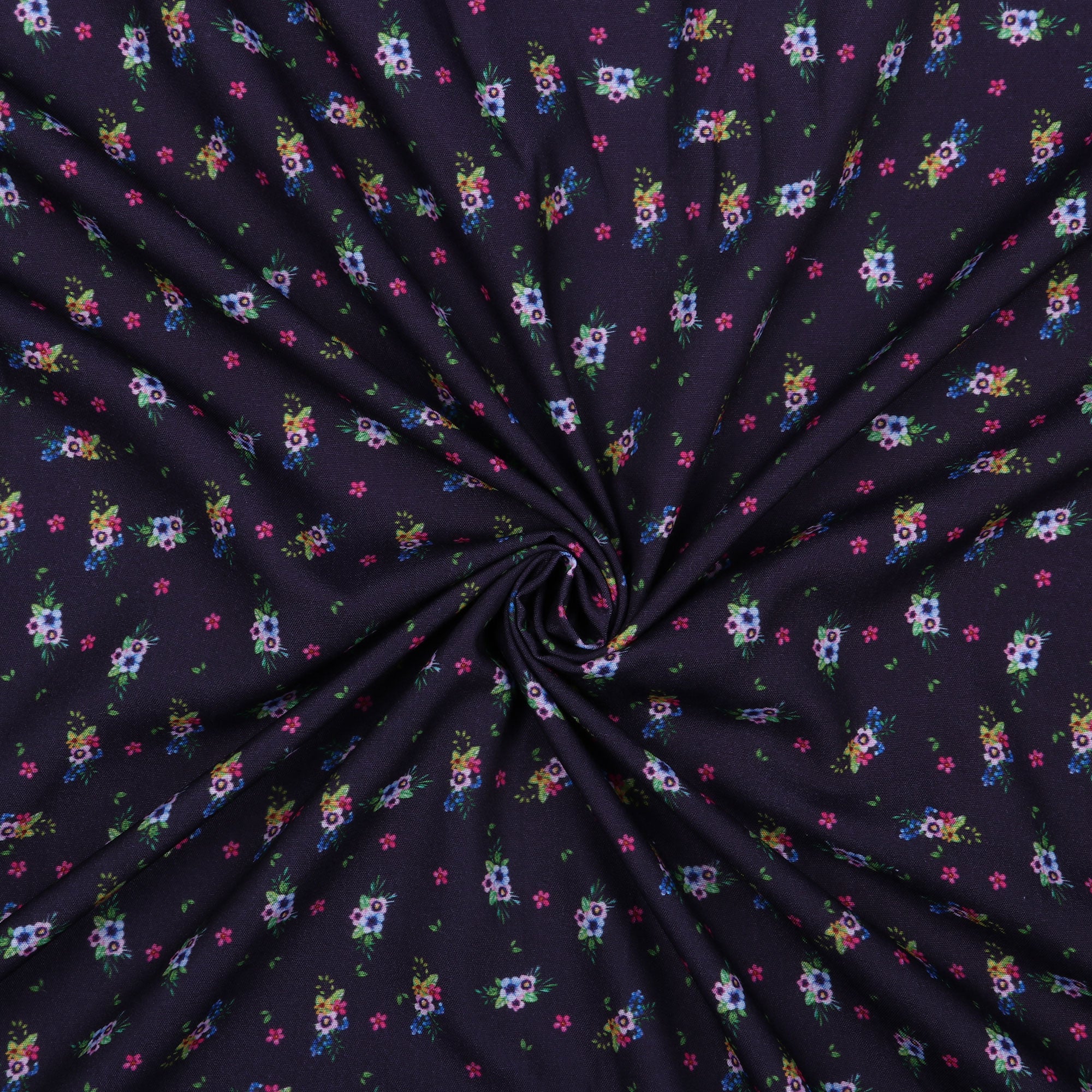 Dark Purple And Pink Floral Pattern Digital Print Rayon Fabric