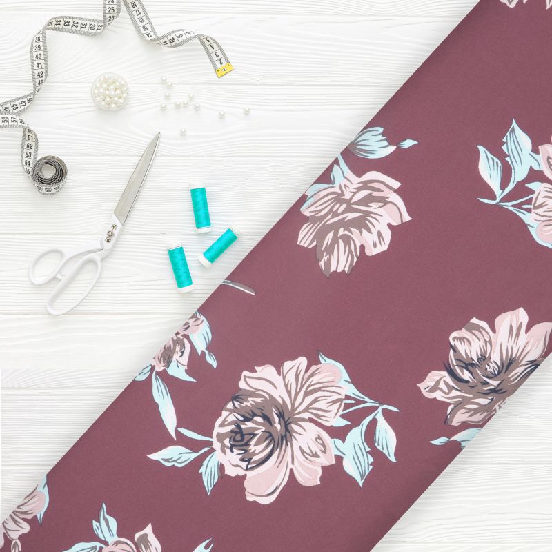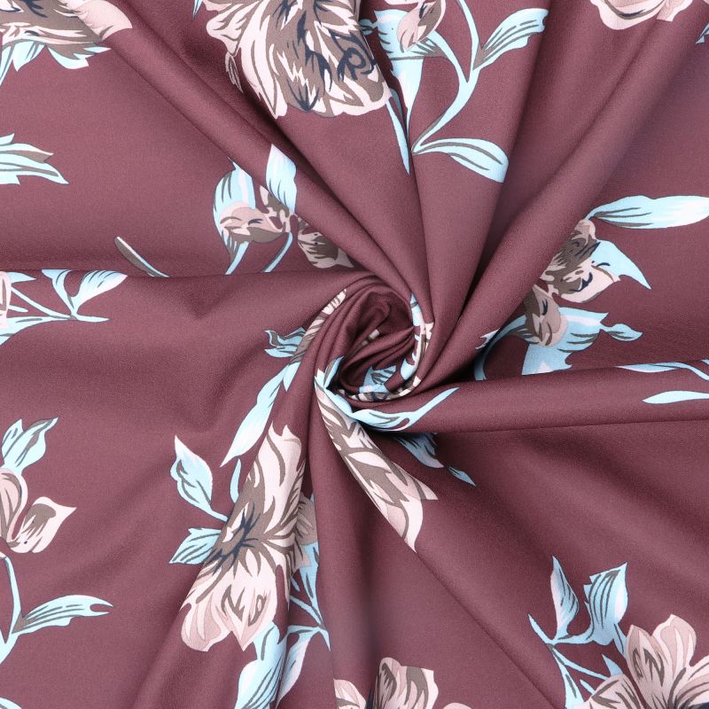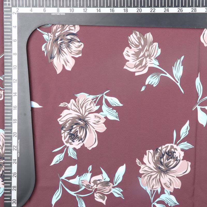 Dark Red And Dark Orange Floral Pattern Digital Print American Crepe Fabric