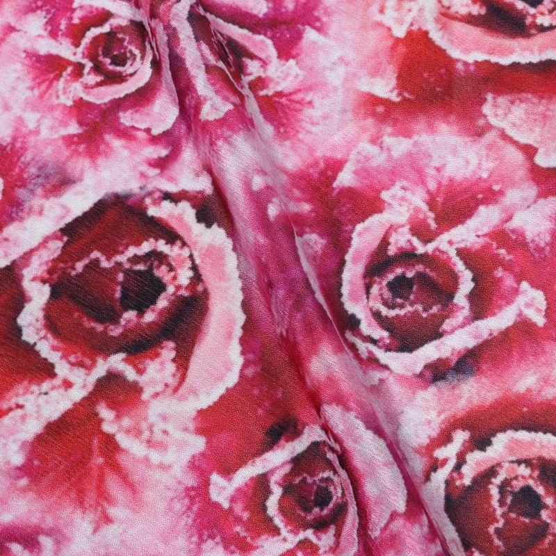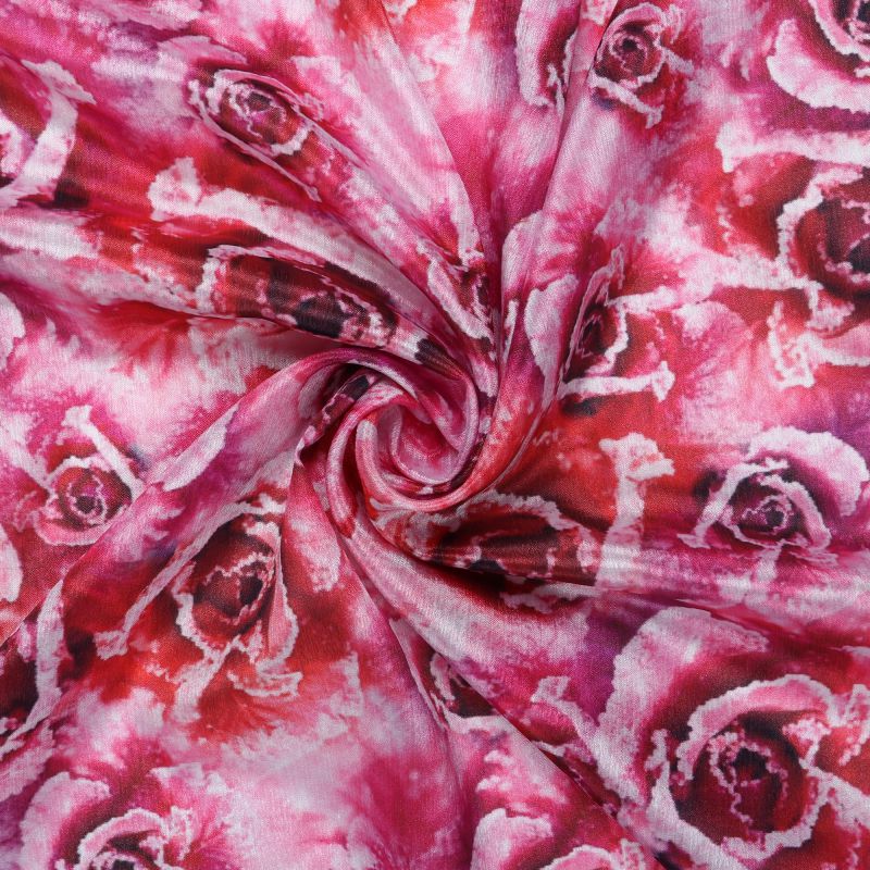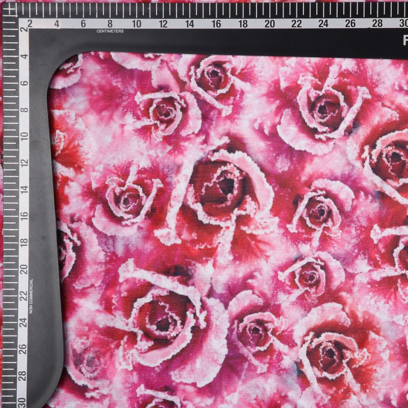 Deep Pink And White Floral Pattern Digital Print Chinon Chiffon Fabric