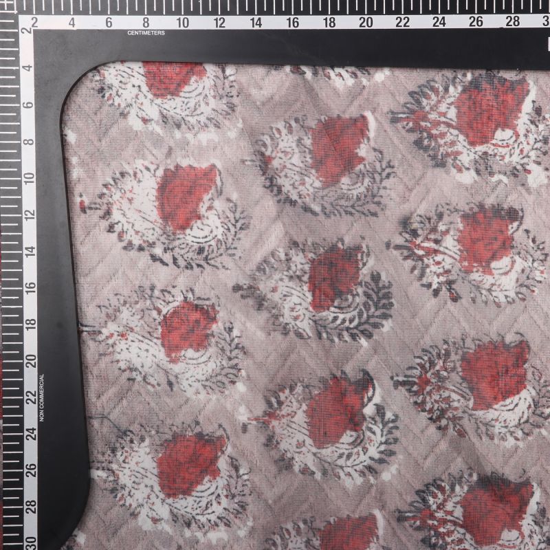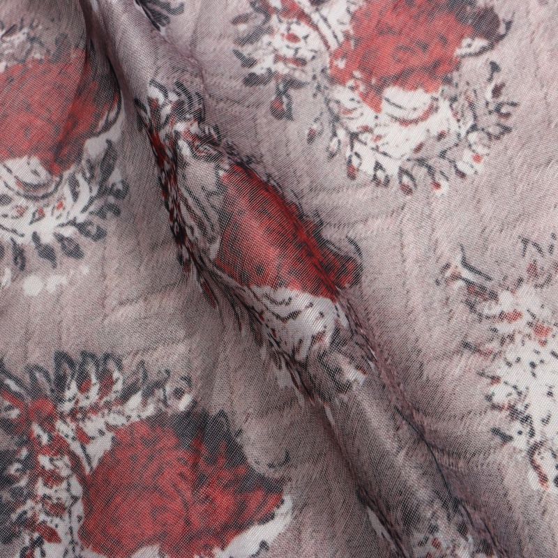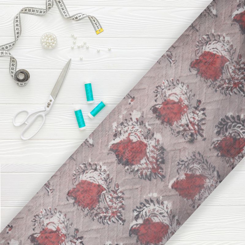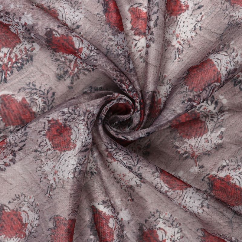 Dusty Brown And Dark Red Floral Pattern Digital Print Chanderi Fabric