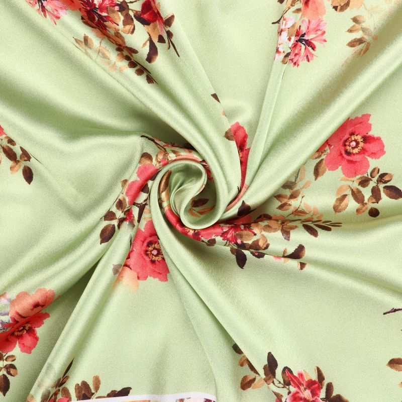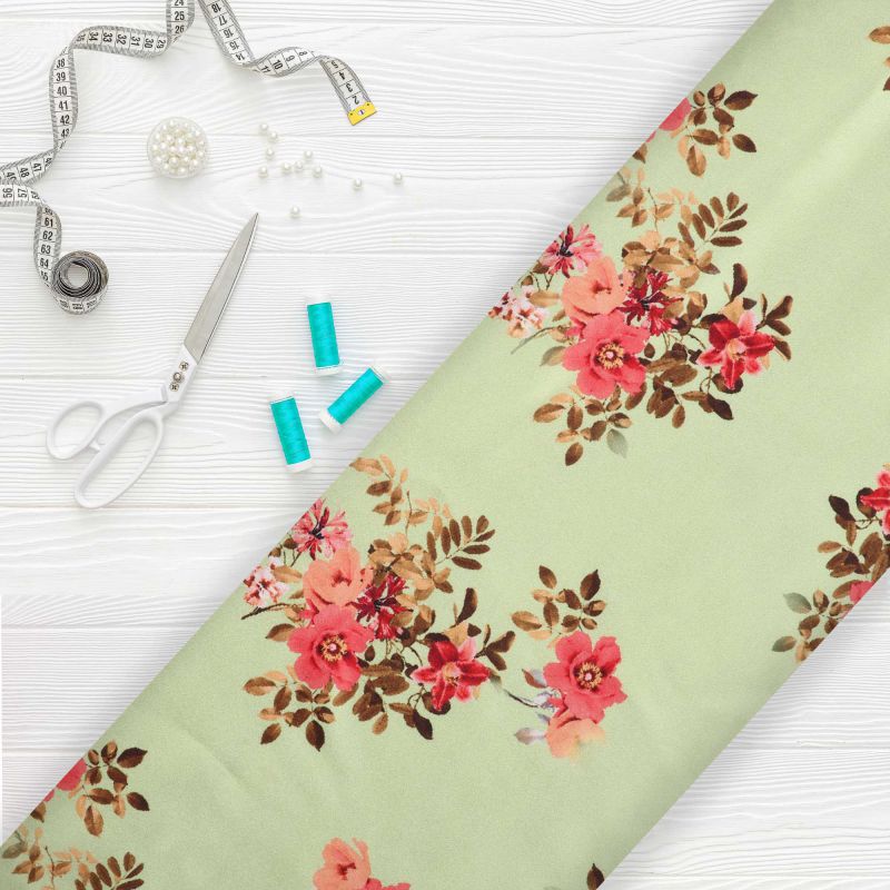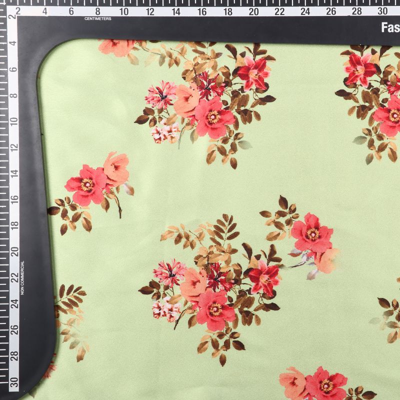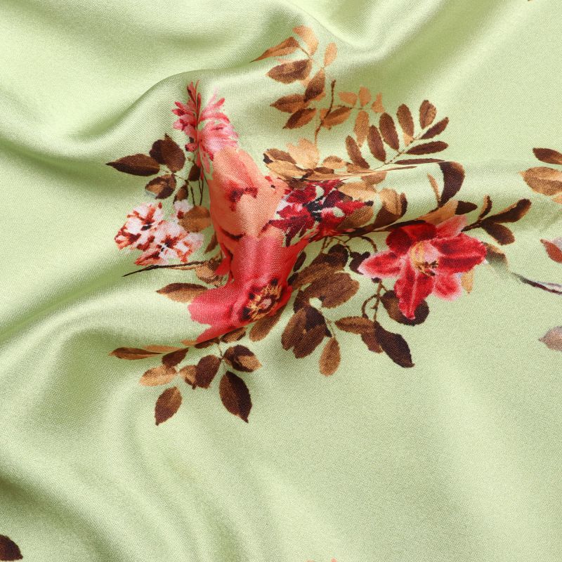 Dusty Lime And Red Floral Pattern Digital Print Japan Satin Fabric