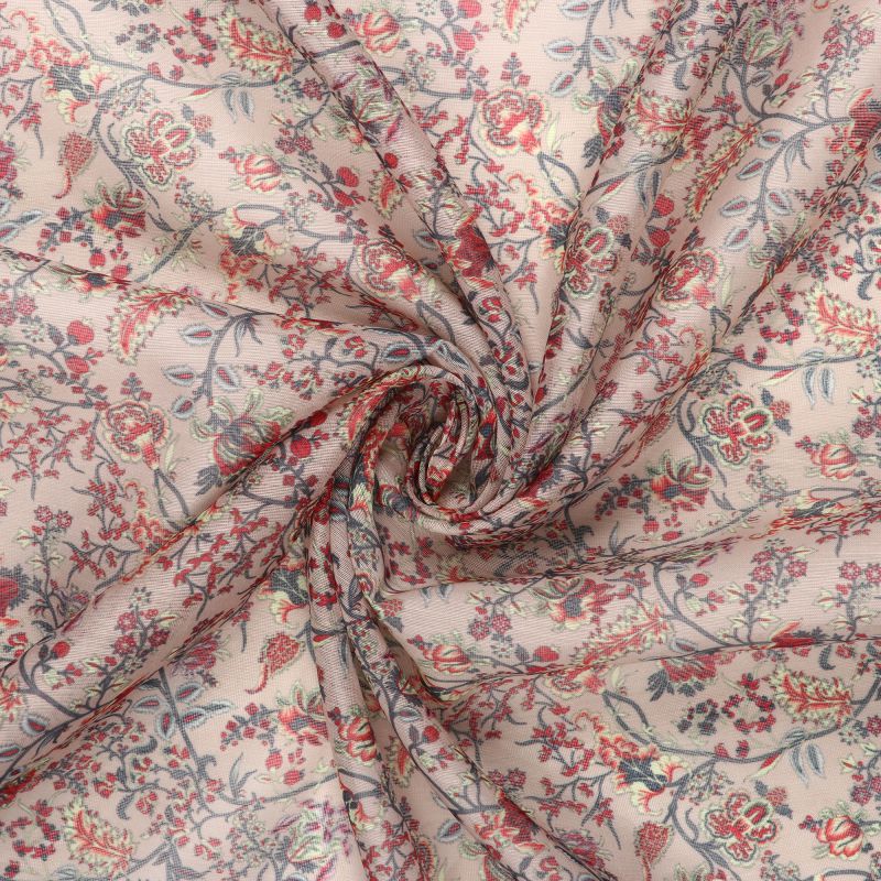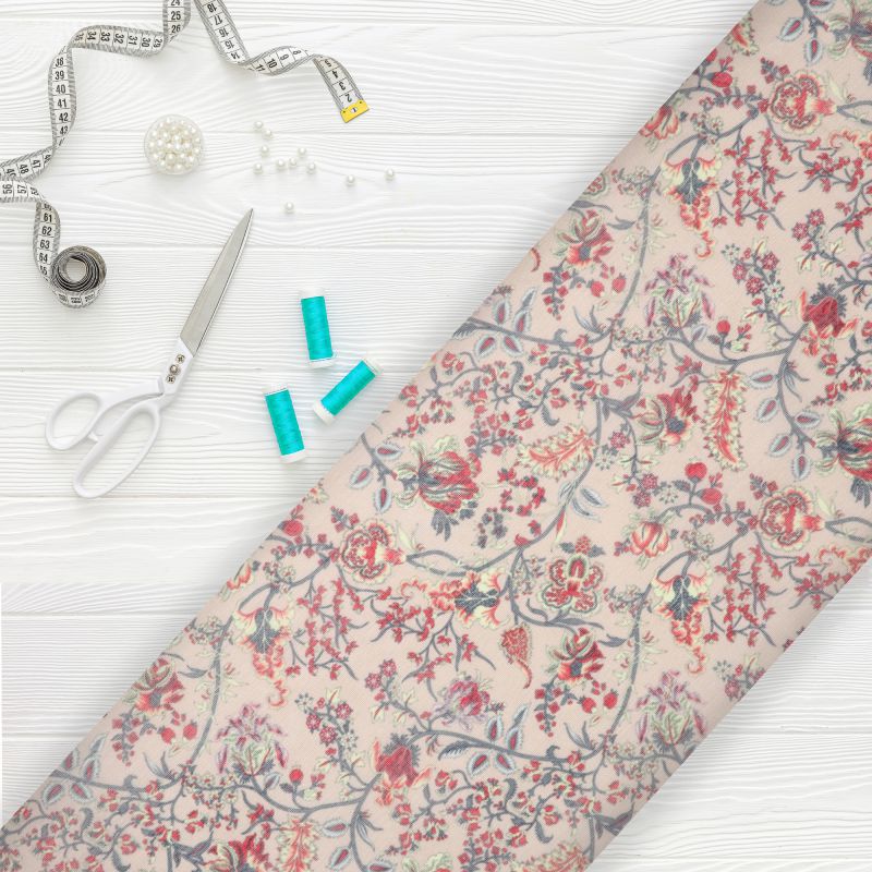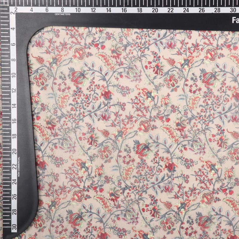 Dusty Peach And Red Floral Pattern Digital Print Chanderi Fabric