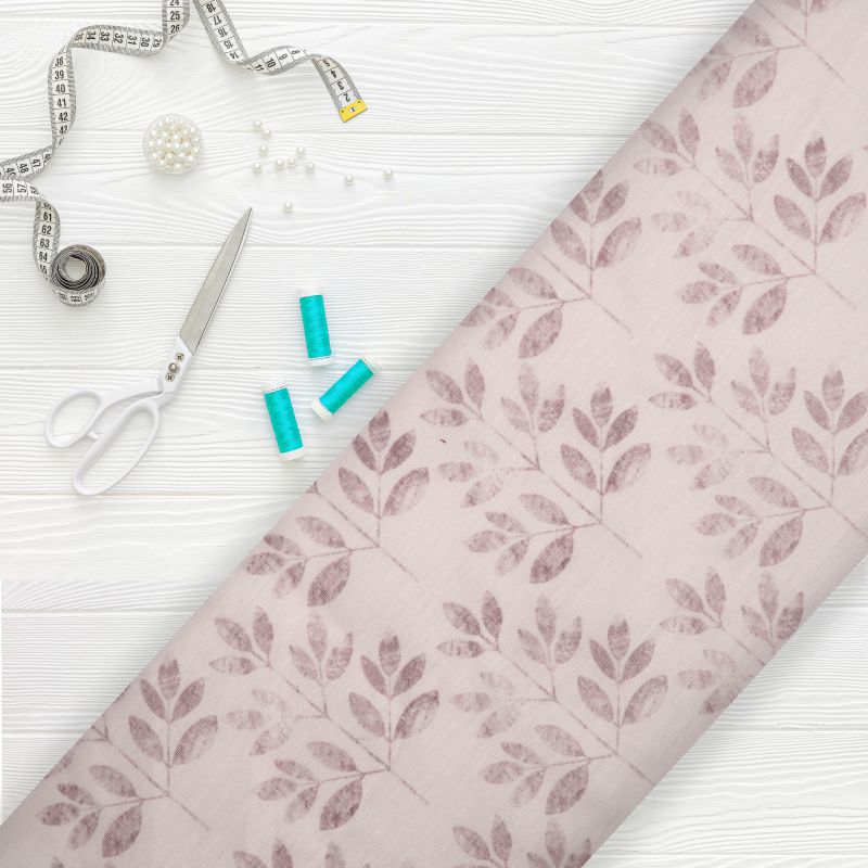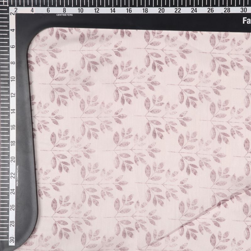 Dusty Pink And Dark Red Leaf Pattern Digital Print Chanderi Fabric