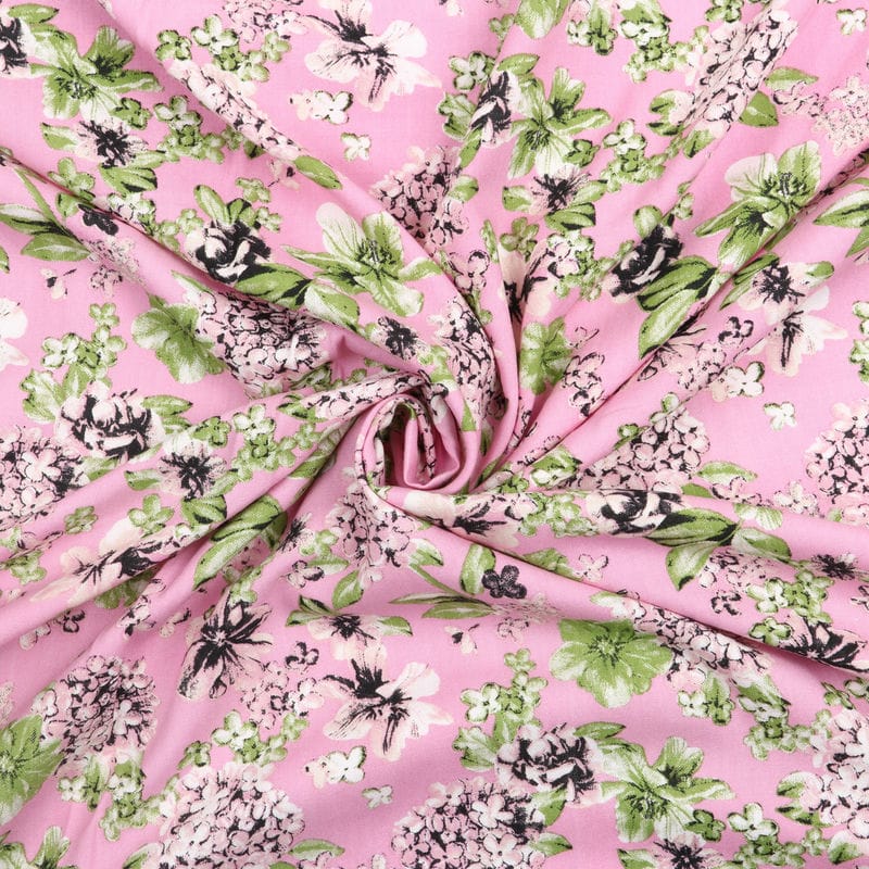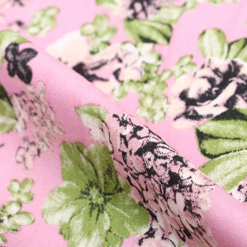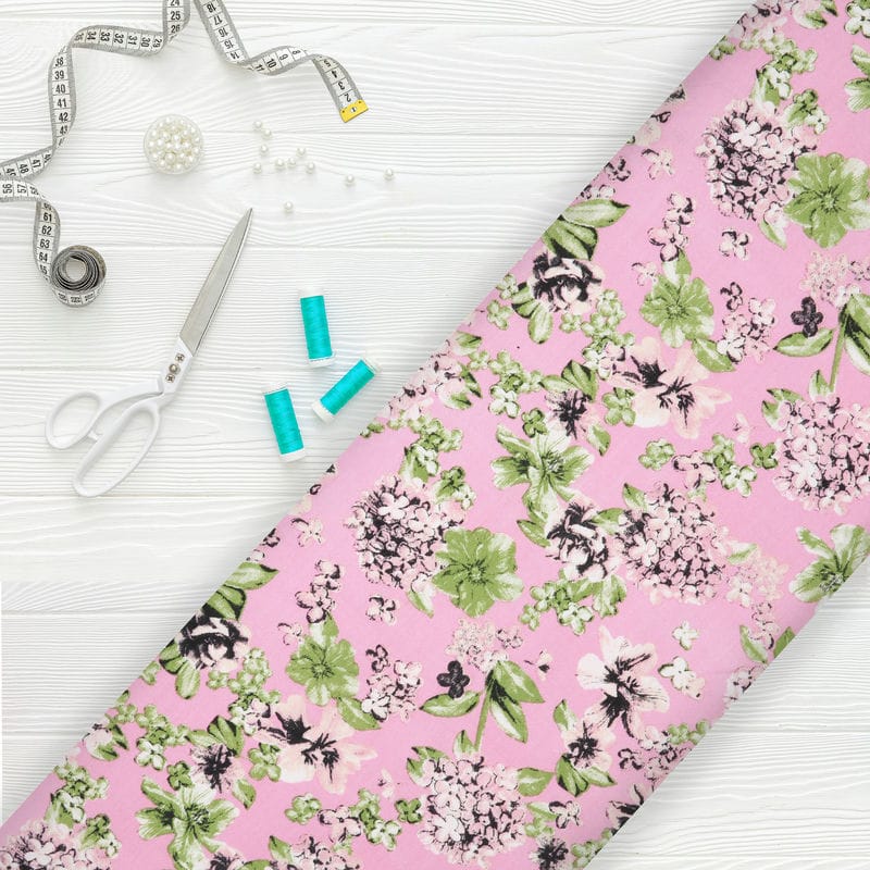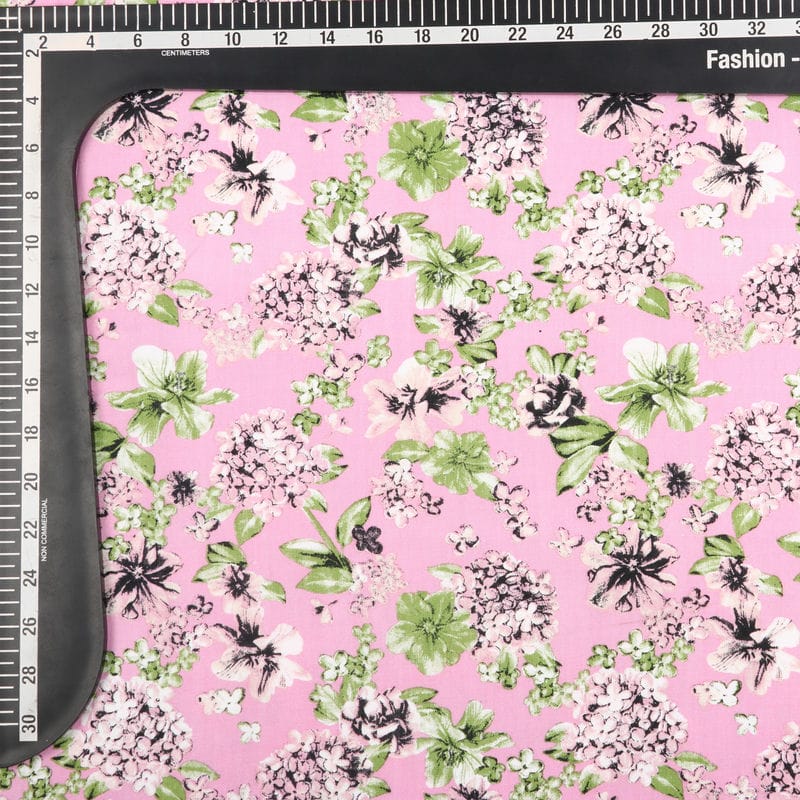 Dusty Pink And Green Floral Pattern Screen Print Rayon Fabric