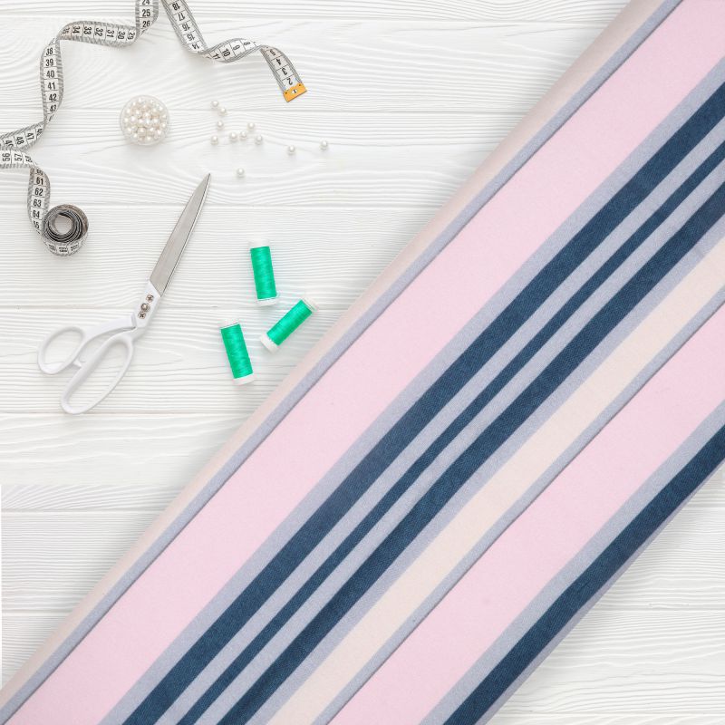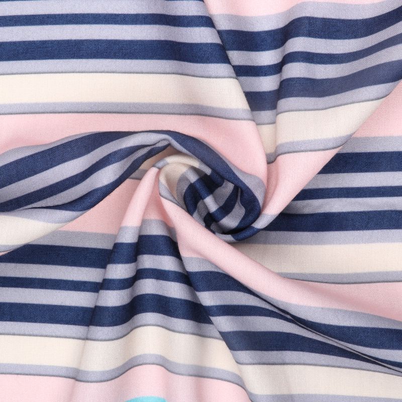 Top QualityDusty Pink And Navy Blue Stripes Pattern Digital Print Rayon Fabric