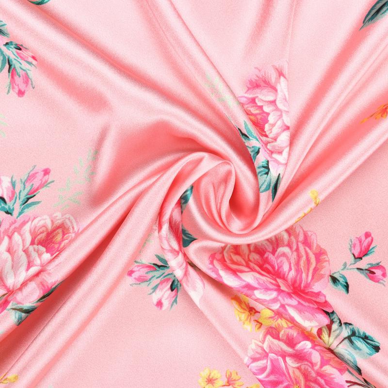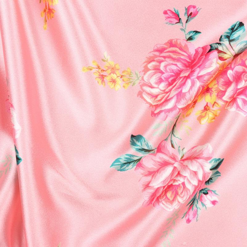 Dusty Pink And Yellow Floral Pattern Digital Print Japan Satin Fabric