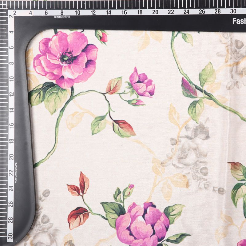 Dusty Yellow And Purple Floral Pattern Digital Print Chinon Chiffon Fabric