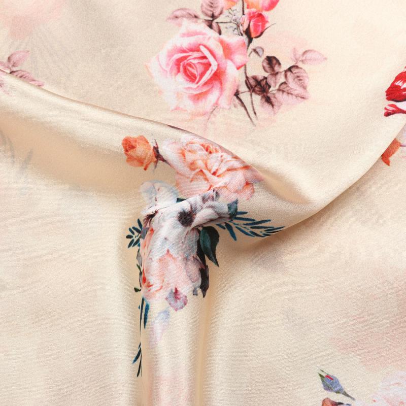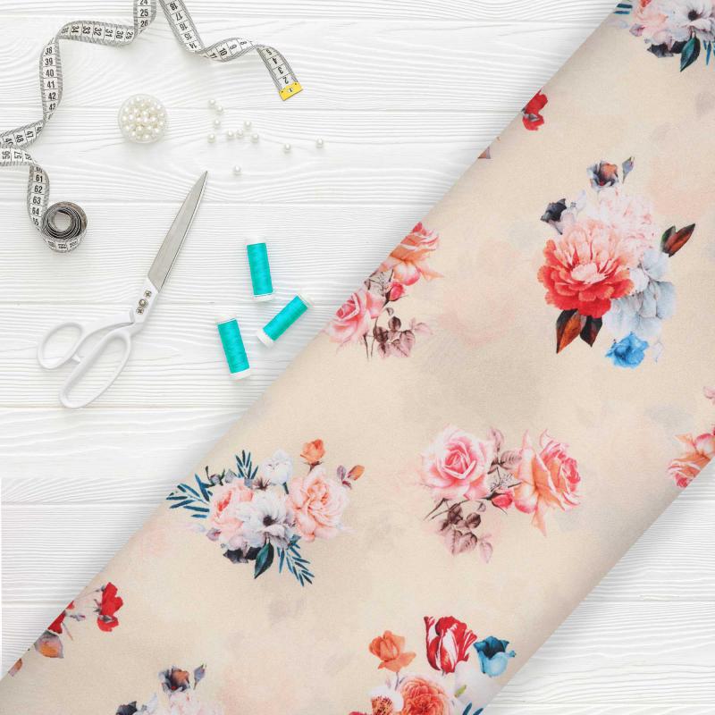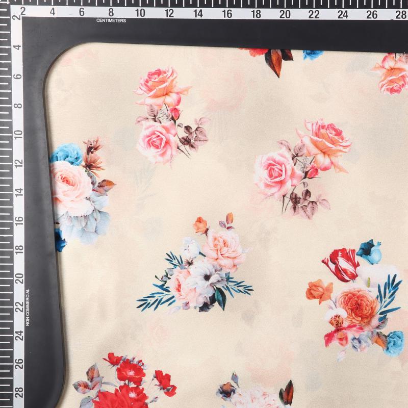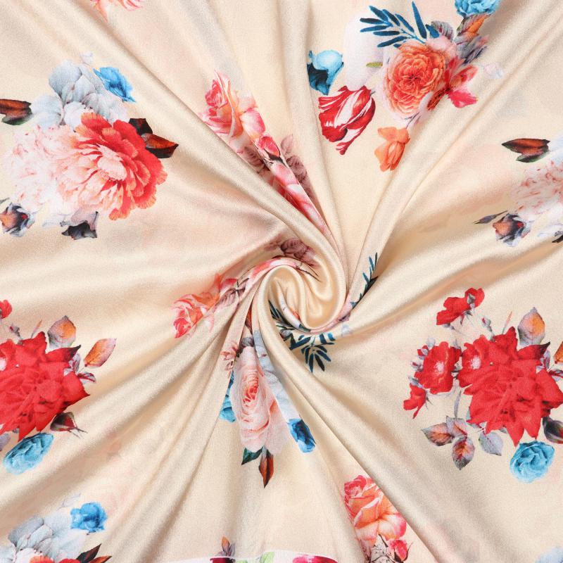 Dusty Yellow And Red Floral Pattern Digital Print Japan Satin Fabric