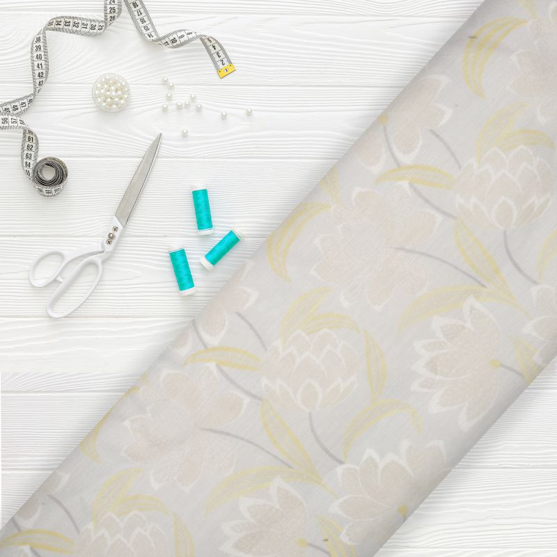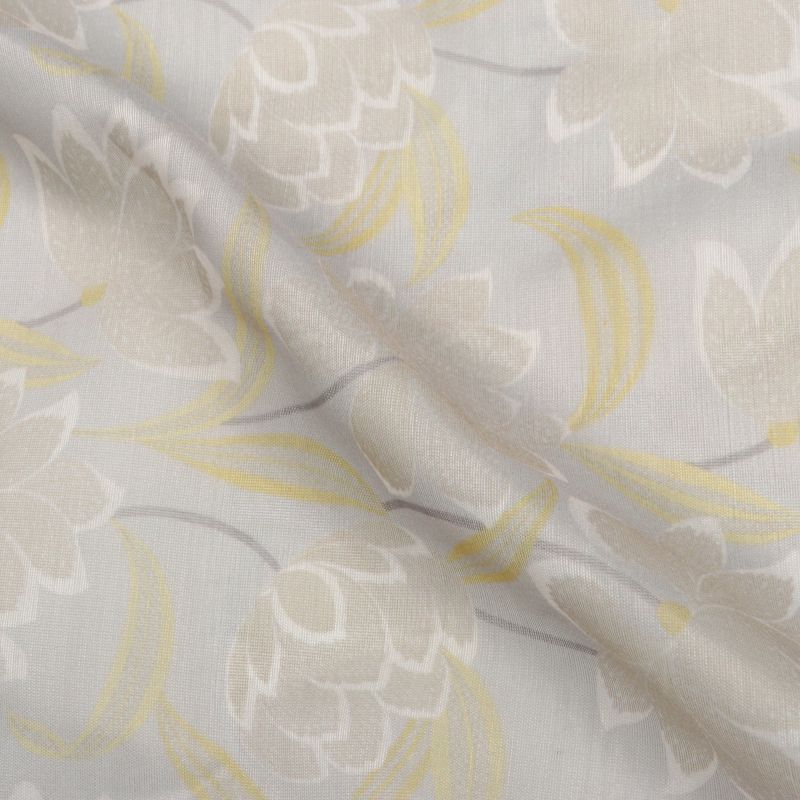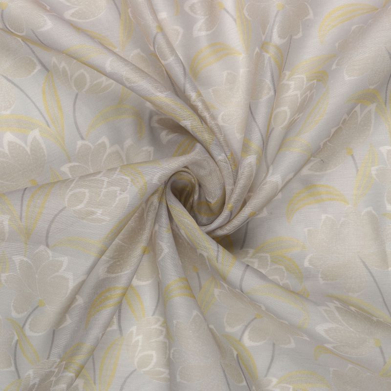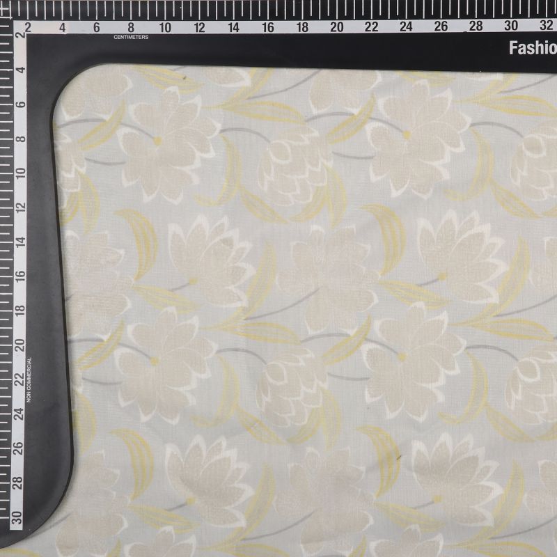Ecru And White Floral Pattern Digital Print Chanderi Fabric