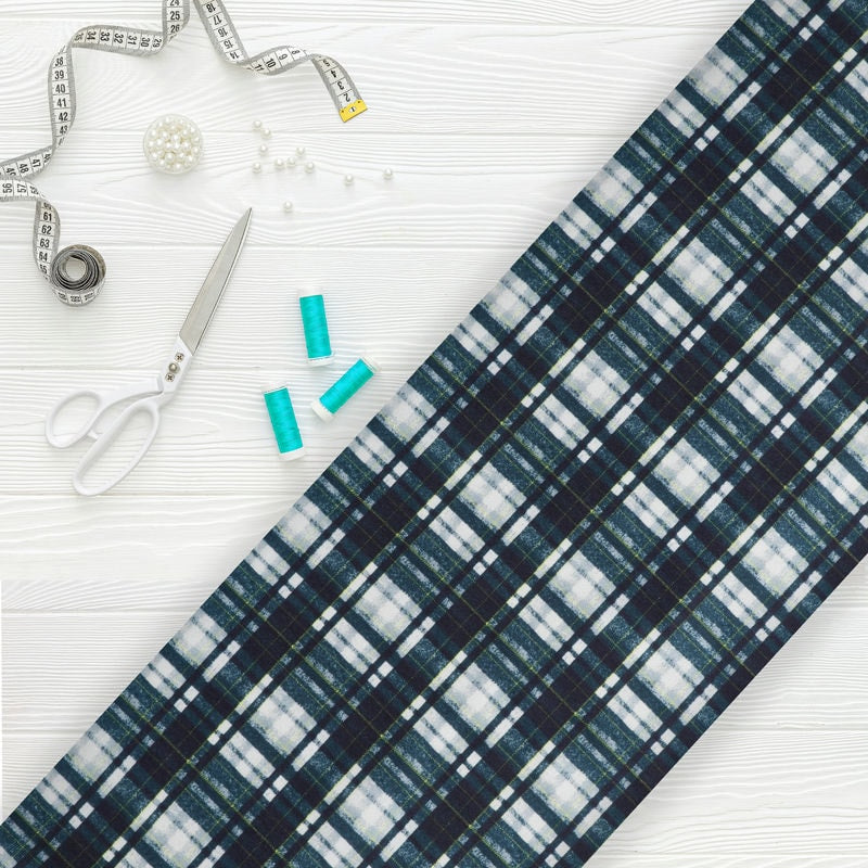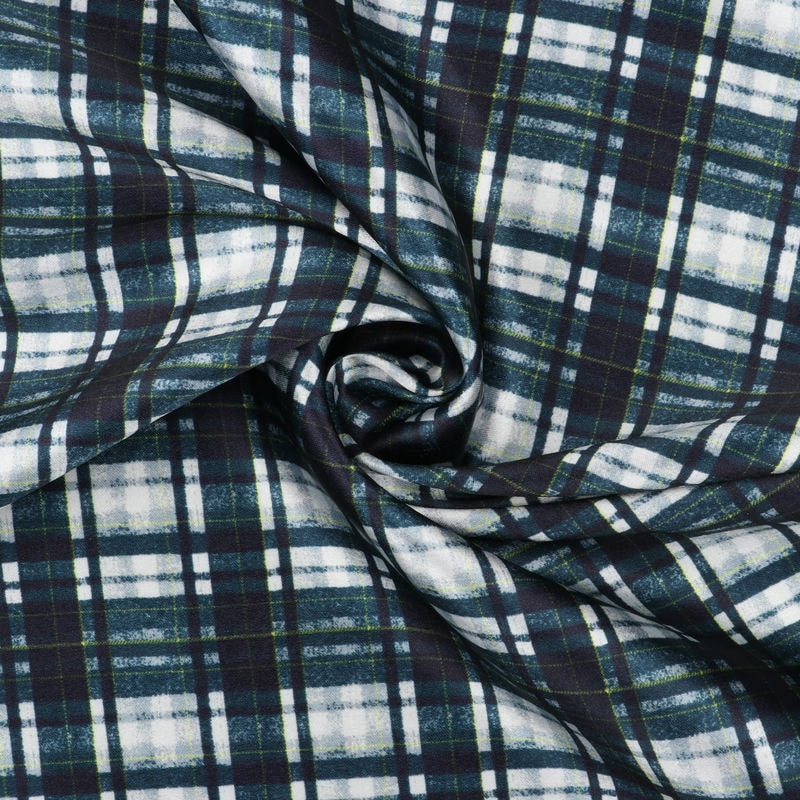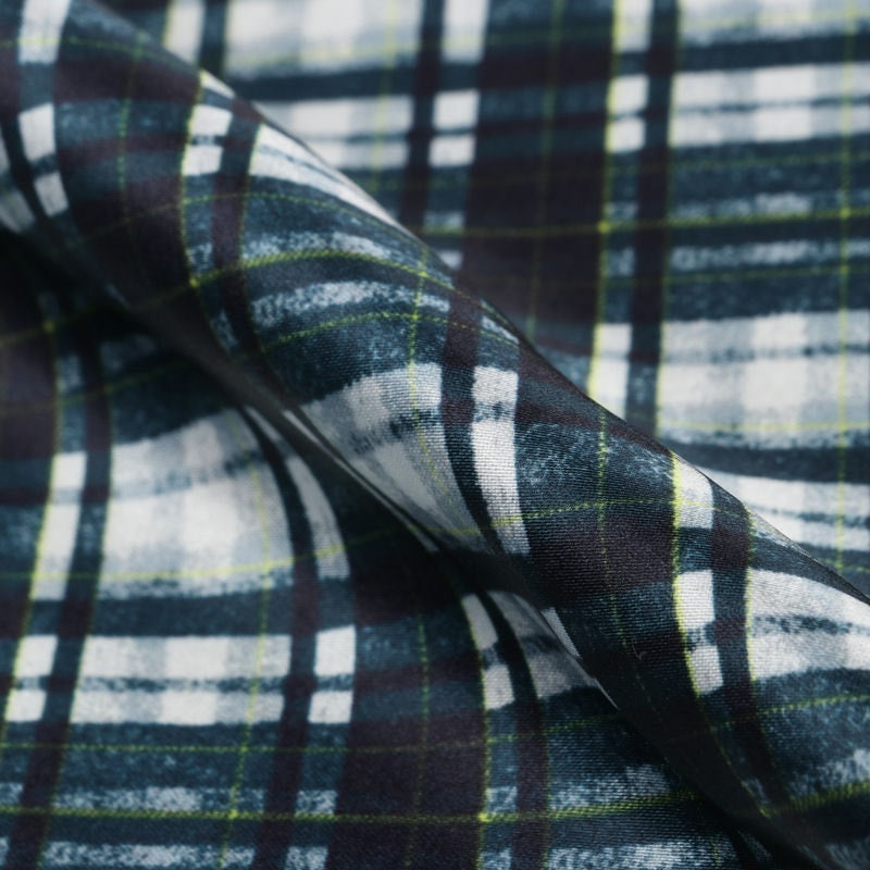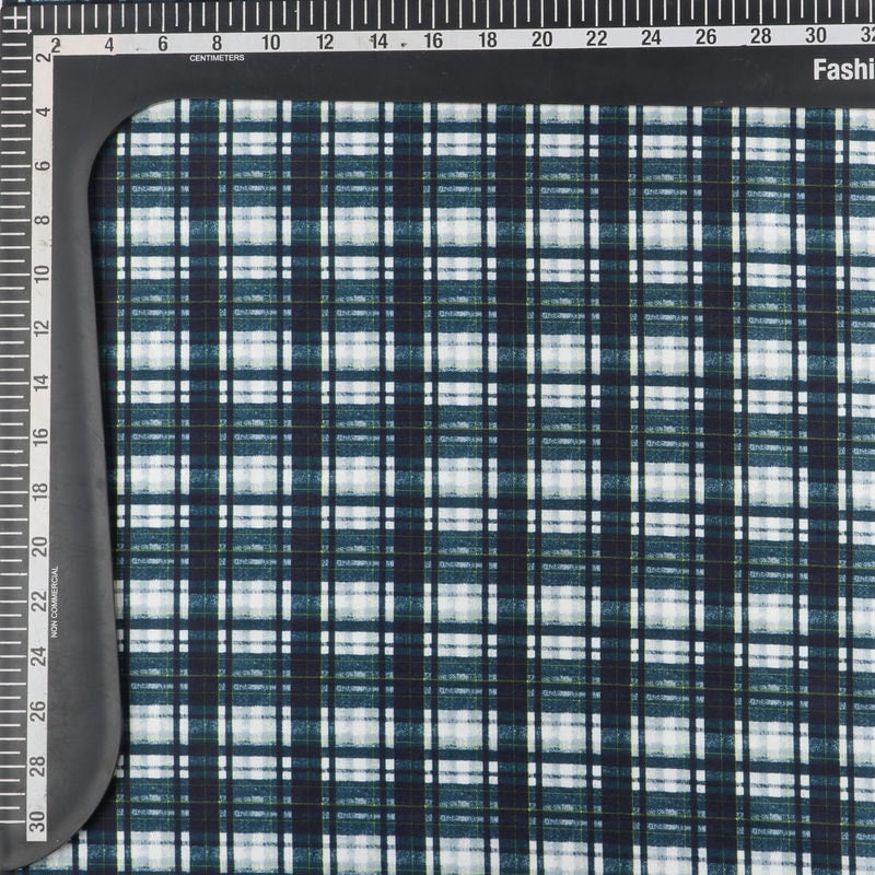 Evergreen And White Checks Pattern Digital Print Japan Satin Fabric