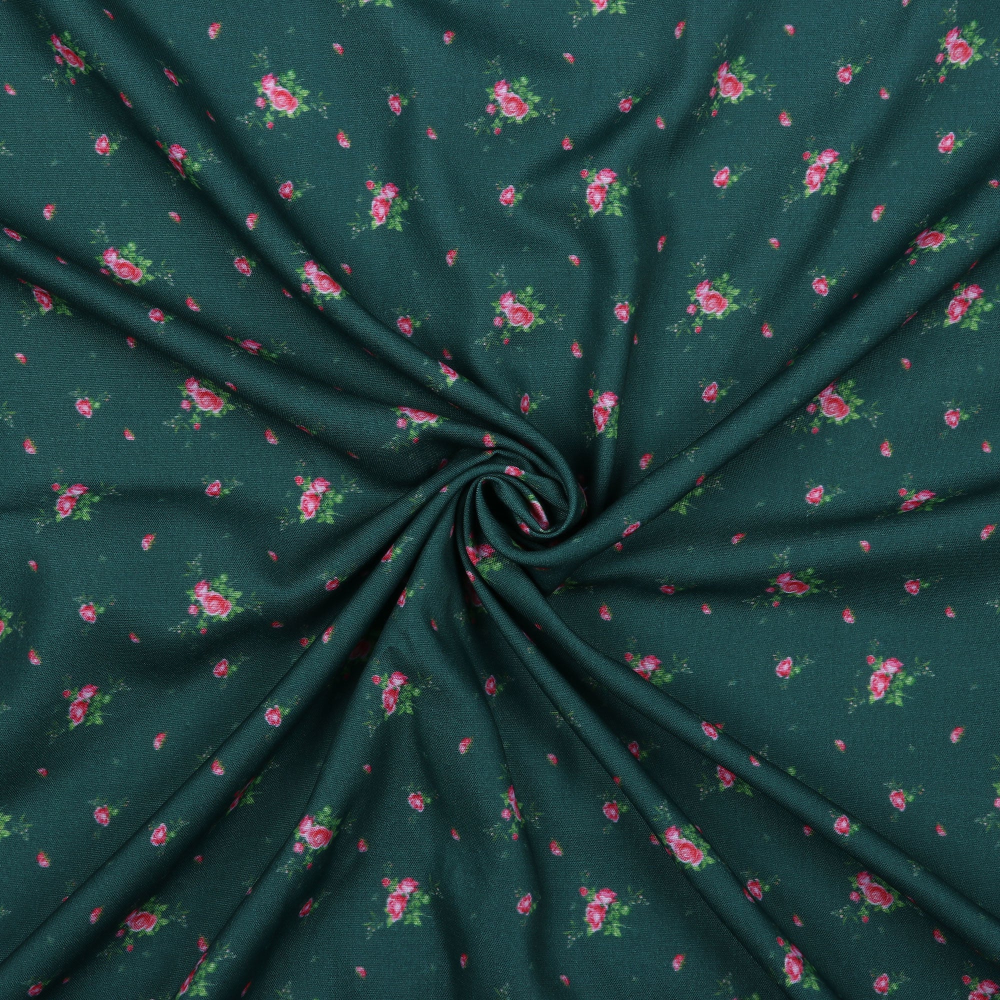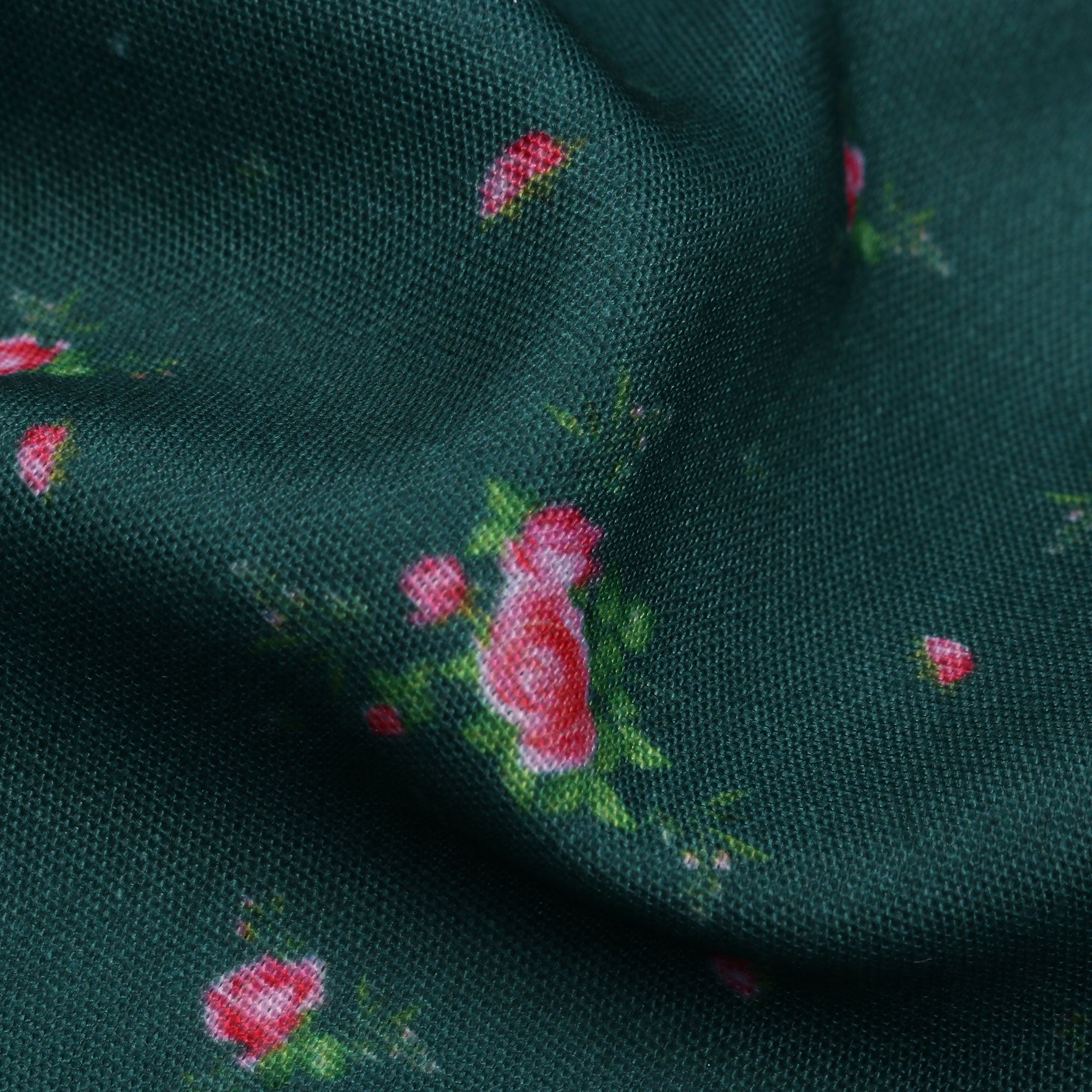 Forest Green And Pink Floral Pattern Digital Print Rayon Fabric