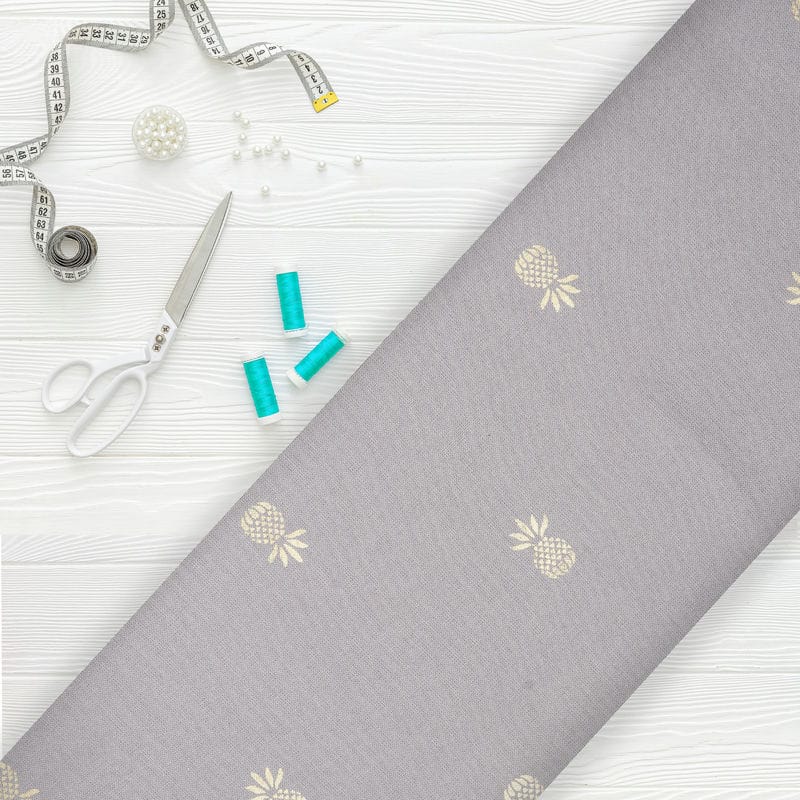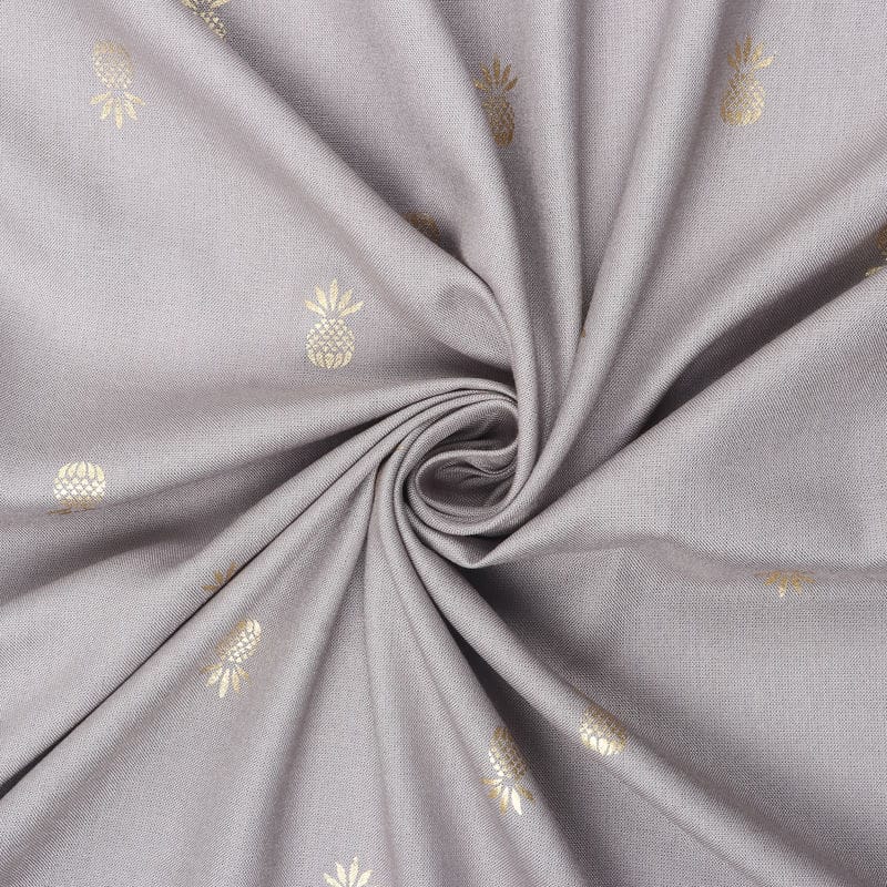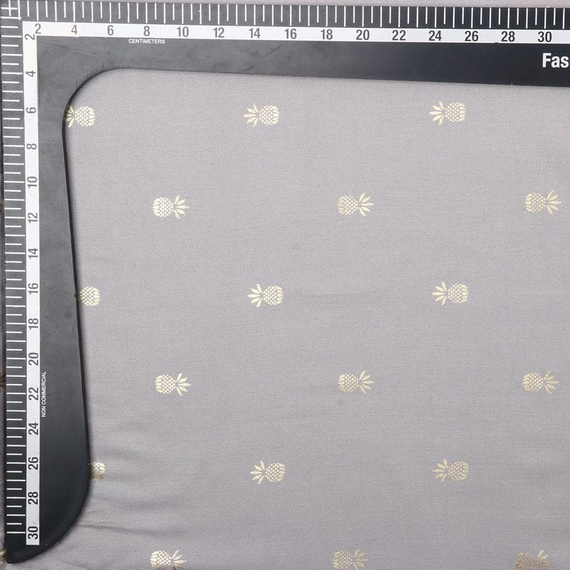 Golden Yellow And Light Grey Floral Pattern Foil Print Rayon Fabric