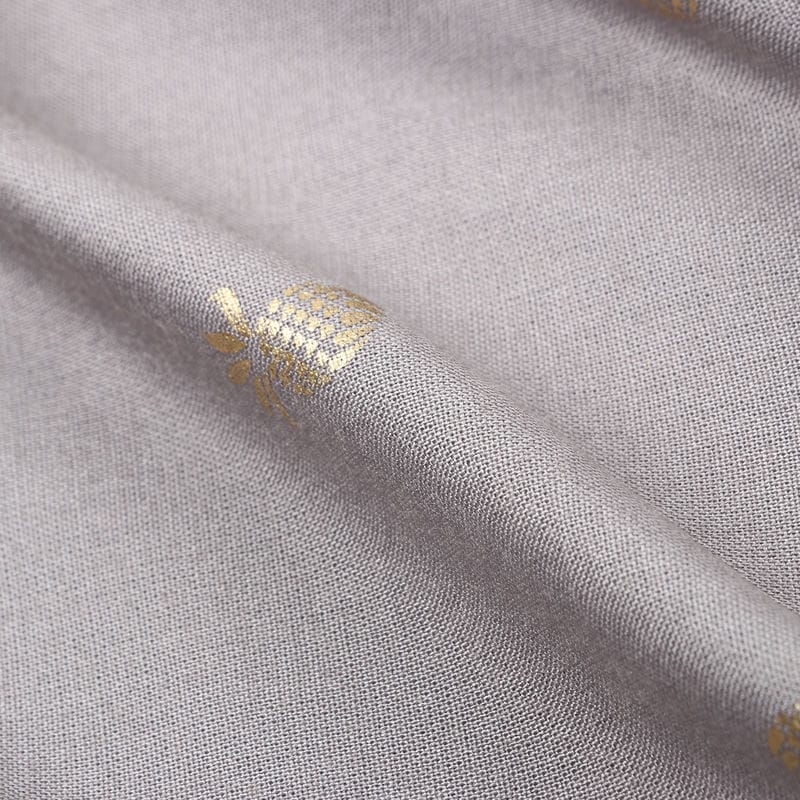 Top QualityGolden Yellow And Light Grey Floral Pattern Foil Print Rayon Fabric