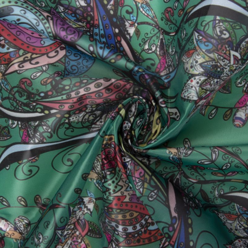 Green And Blue Floral Pattern Digital Print Liquid Organza Fabric