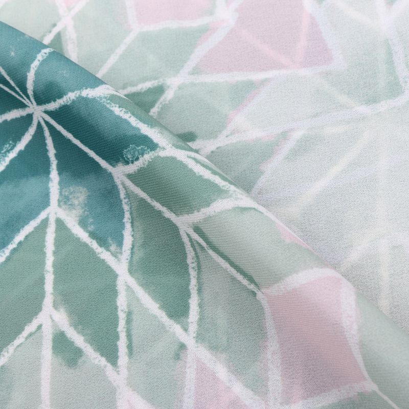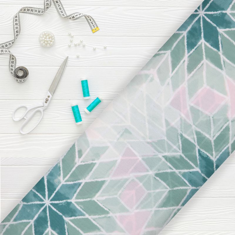 Green And Dusty Pink Geometric Pattern Digital Print Georgette Fabric