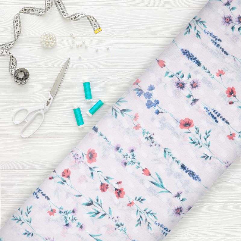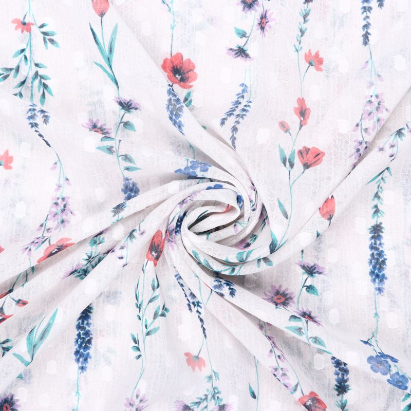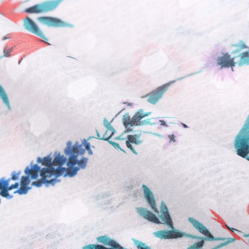Green and Red Floral Pattern Digital Print Marble Dobby Fabric
