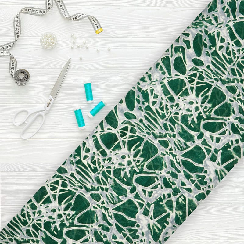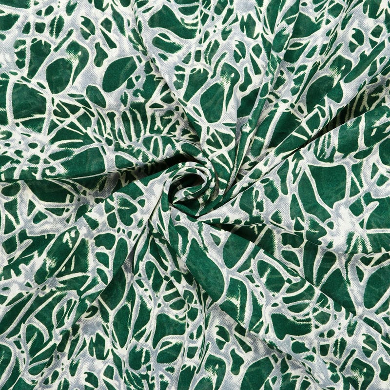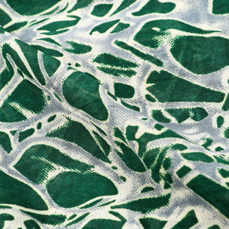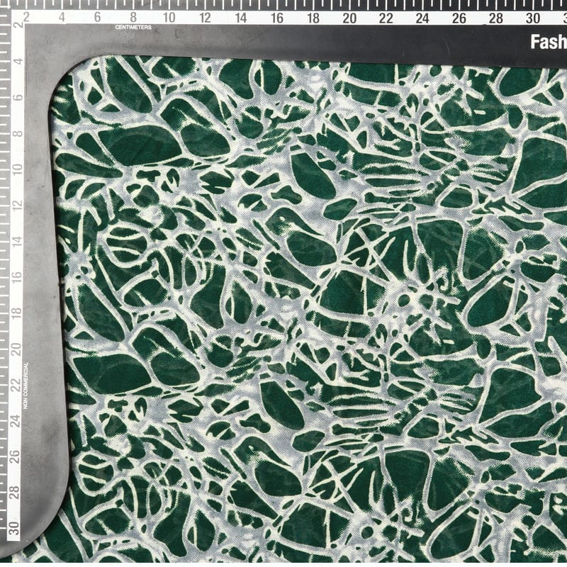 Green And White Abstract Pattern Screen Print Georgette Fabric