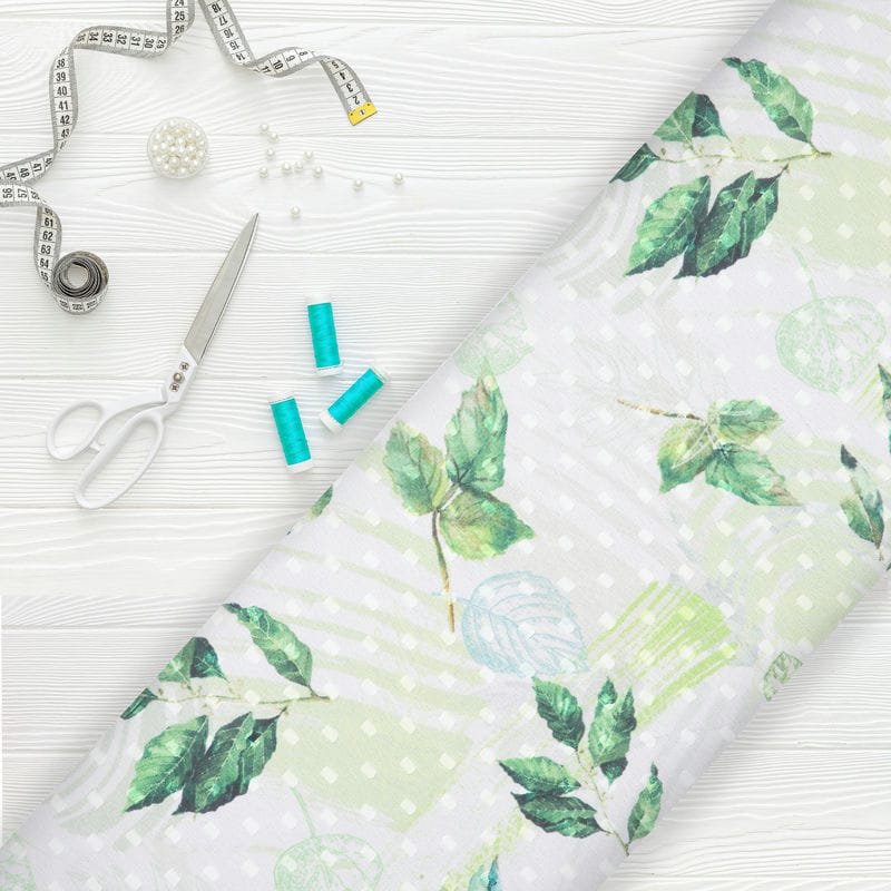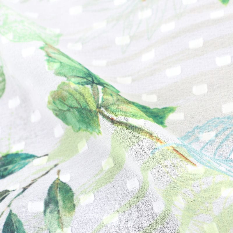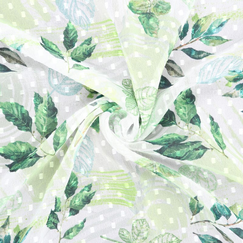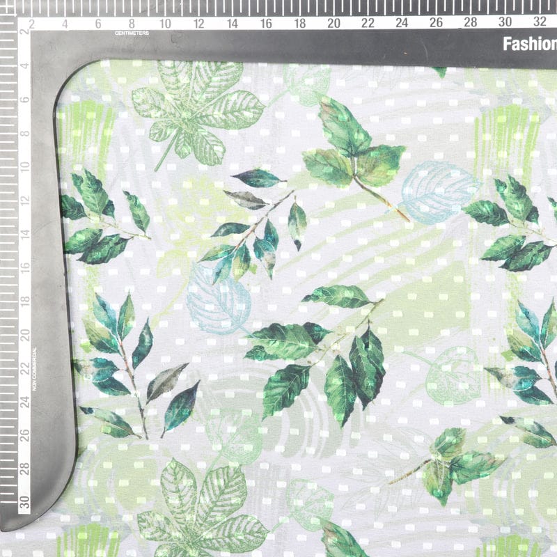 Green And White Floral Pattern Digital Print Georgette Dobby Fabric