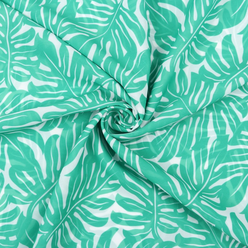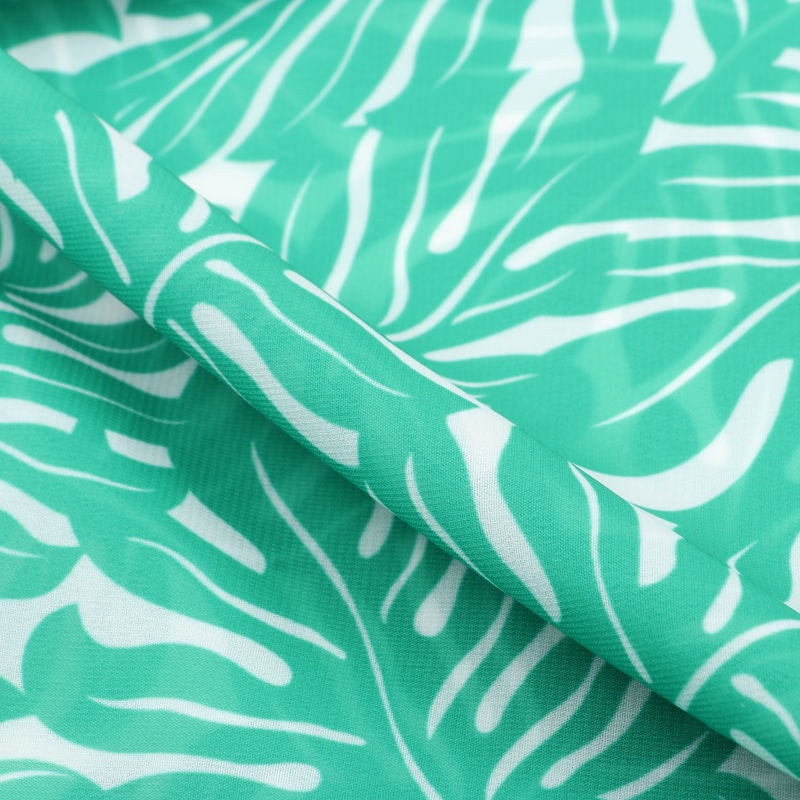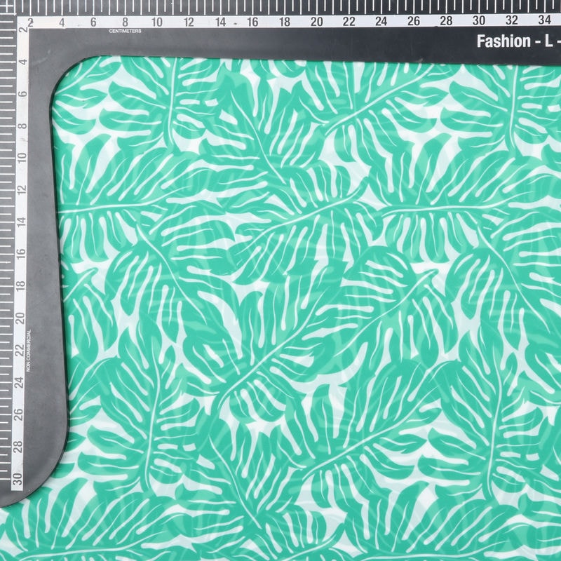 Green And White Leaf Pattern Digital Print Georgette Fabric