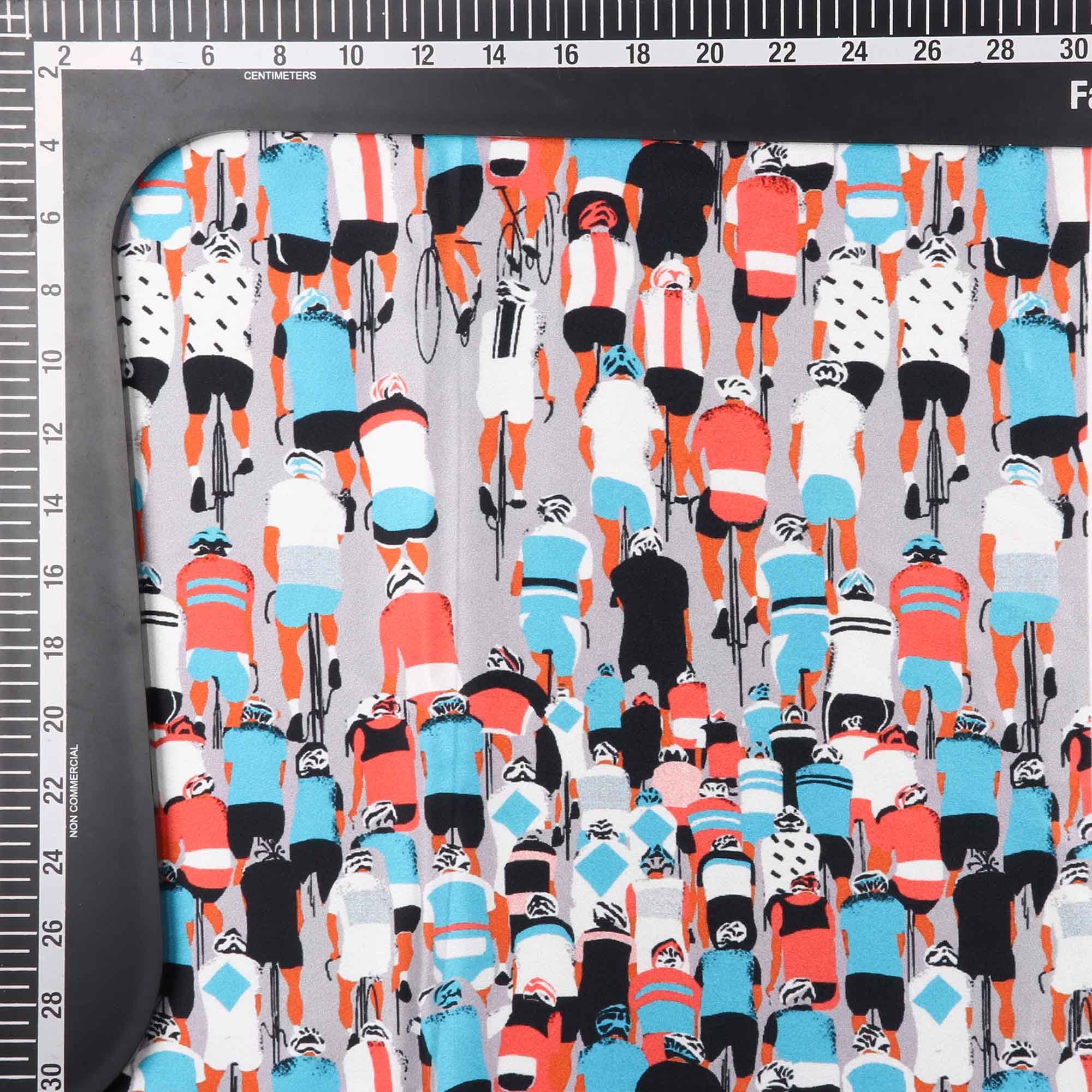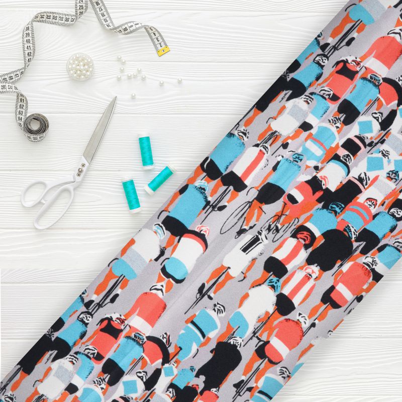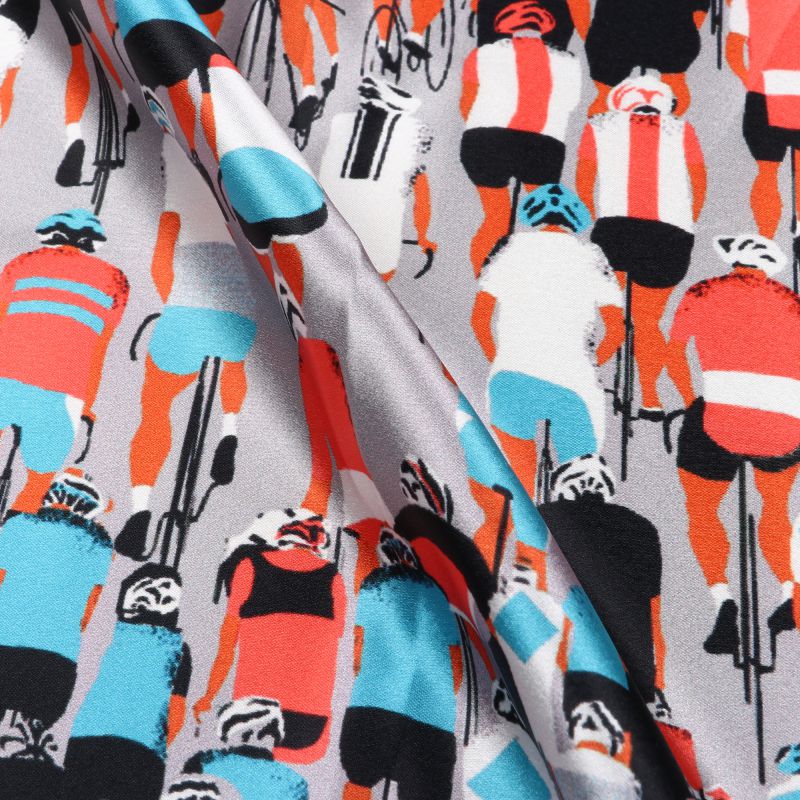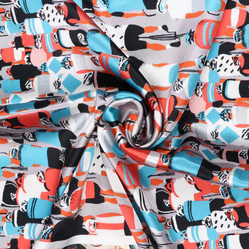 Grey And Blue Quirky Pattern Digital Print Japan Satin Fabric