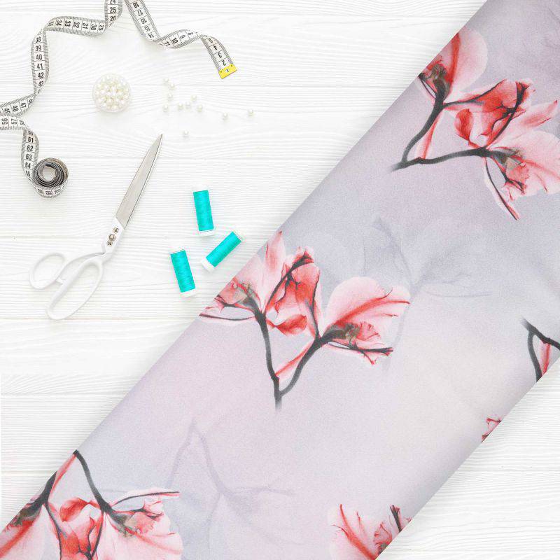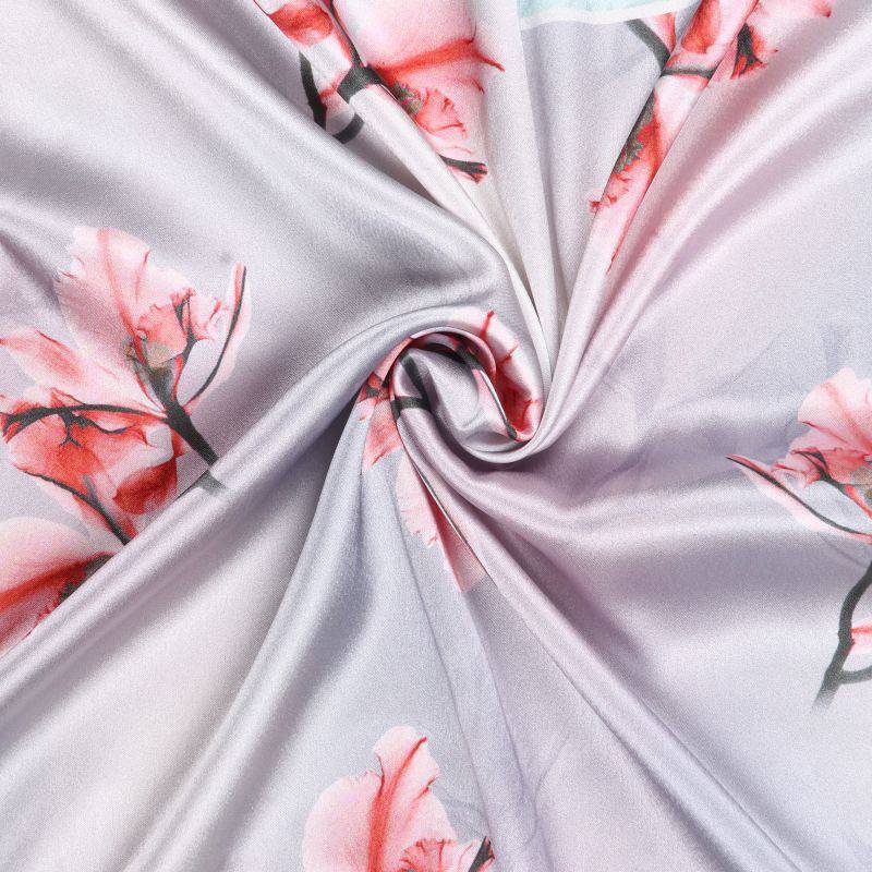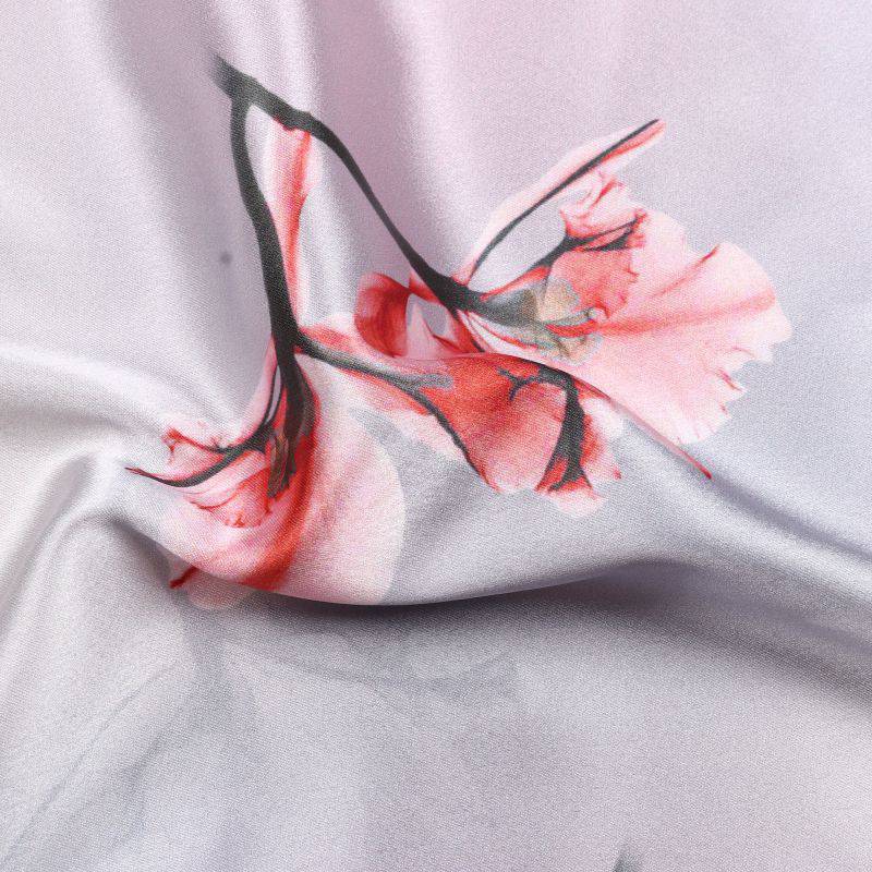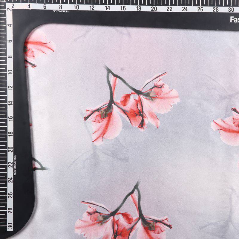 Grey And Salmon Pink Floral Pattern Digital Print Japan Satin Fabric
