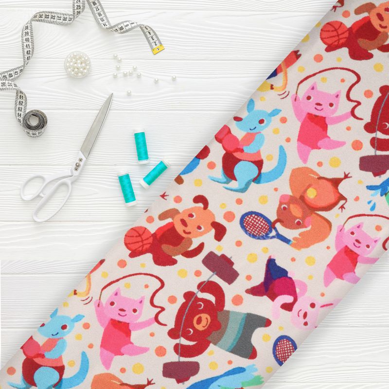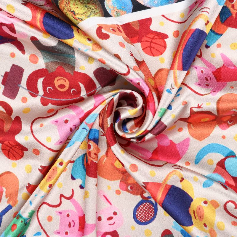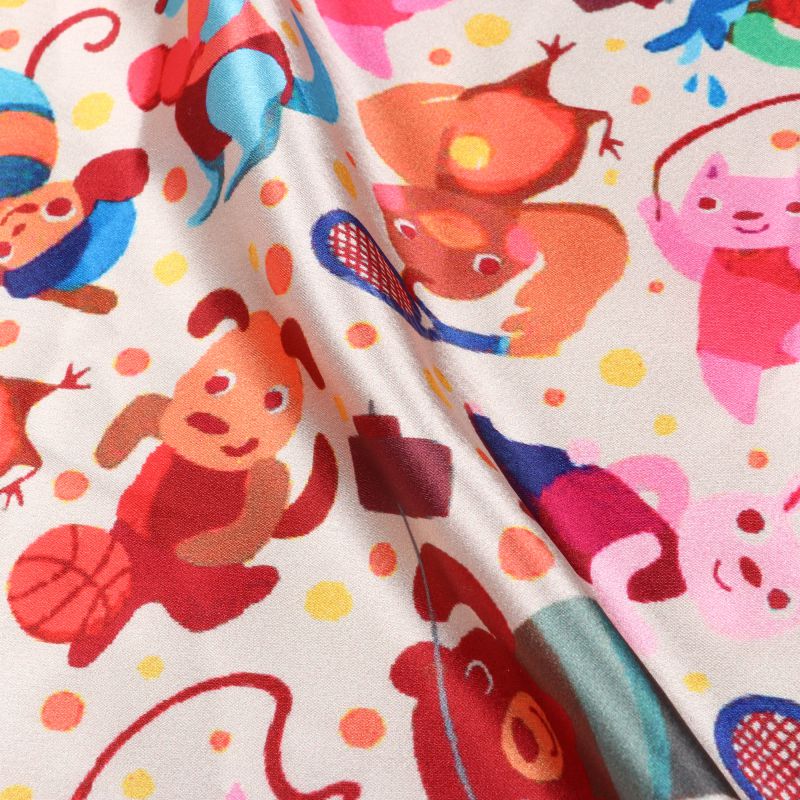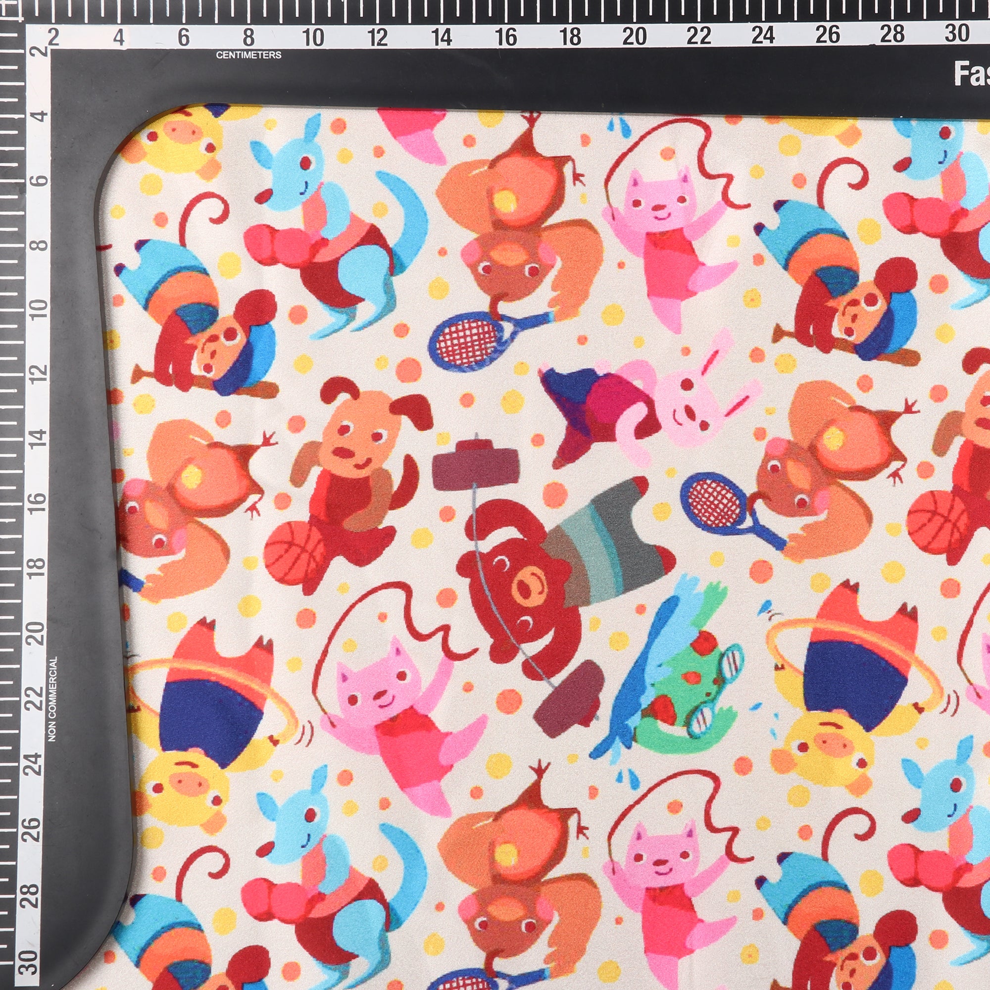 Ivory Cream And Multi Kids Pattern Digital Print Japan Satin Fabric