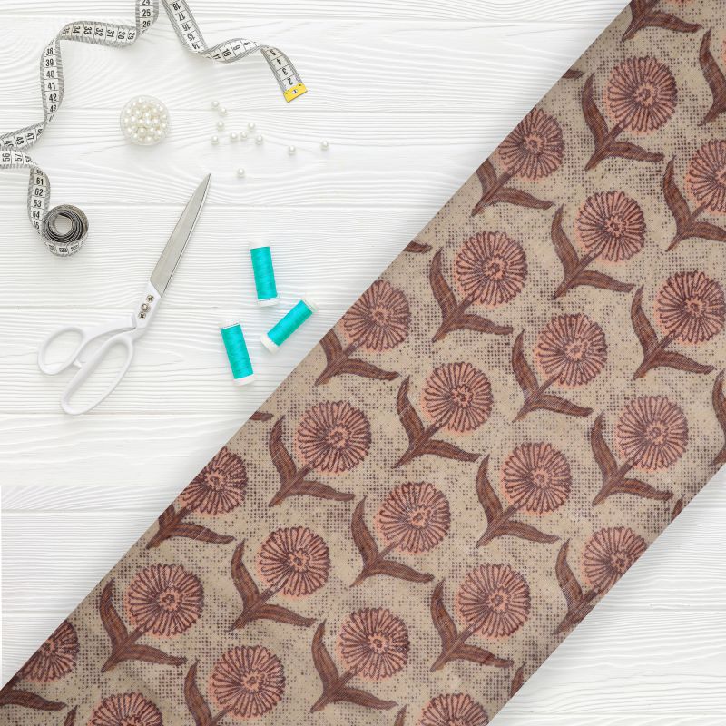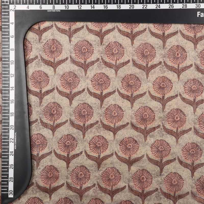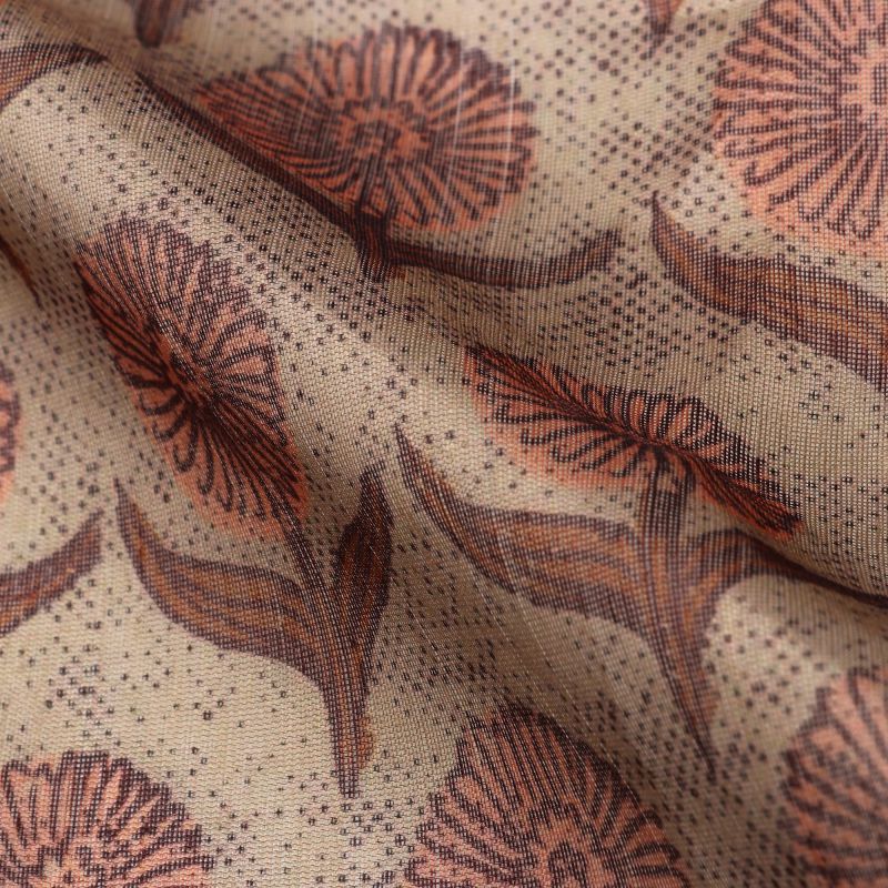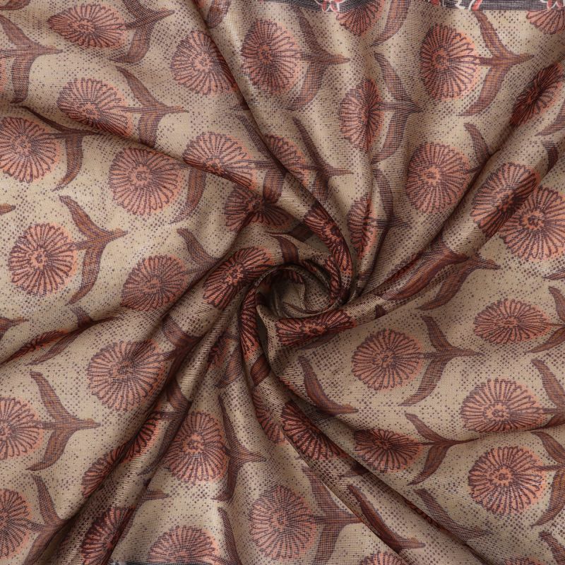 Khaki And Brown Floral Pattern Digital Print Chanderi Fabric