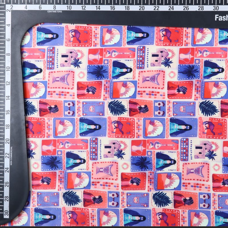 Lavender And Pink Block Pattern Digital Print Silk Satin Fabric