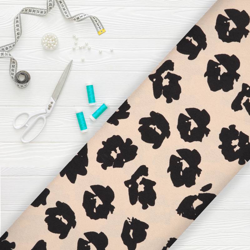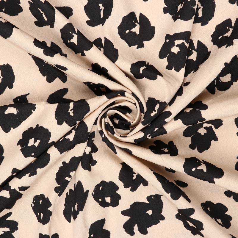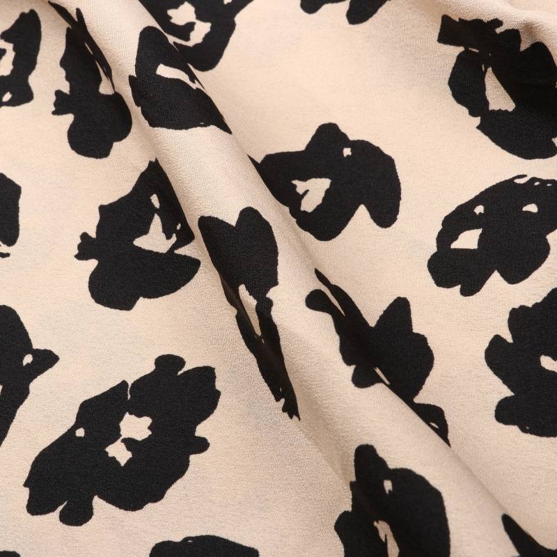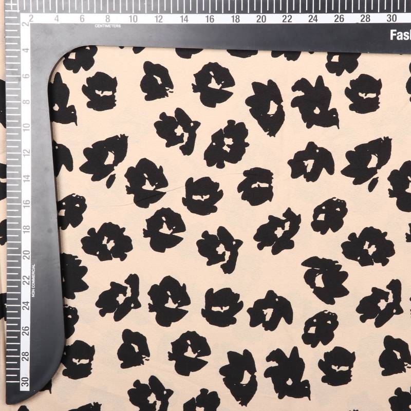 Light Beige And Black Floral Pattern Screen Print Crepe Fabric