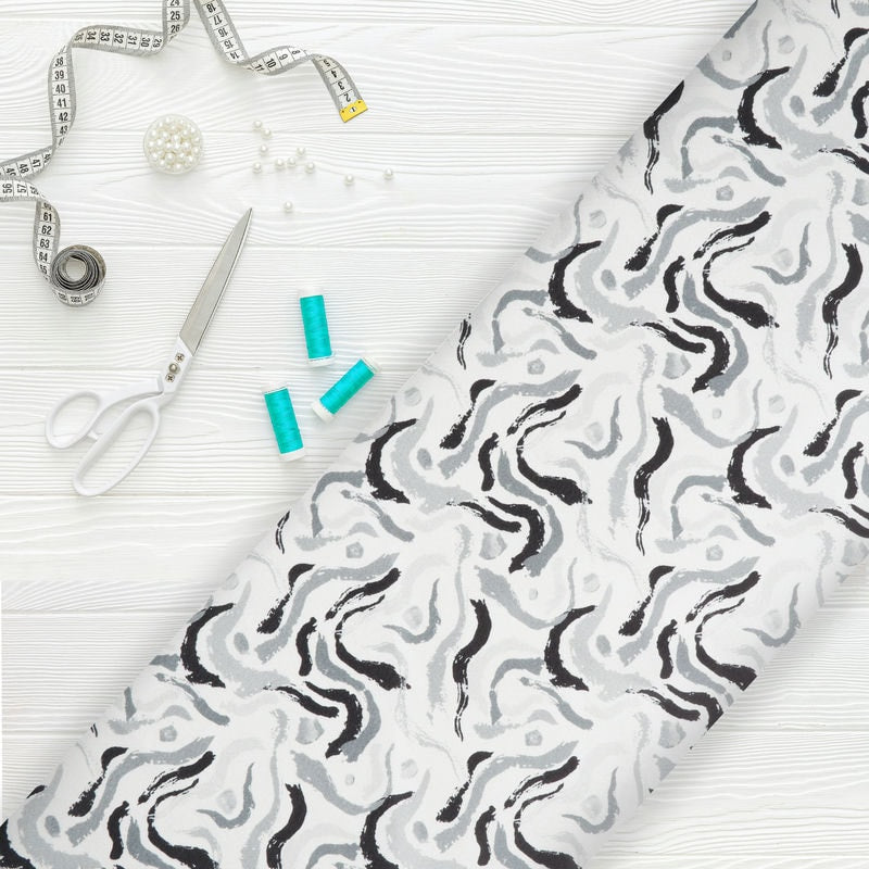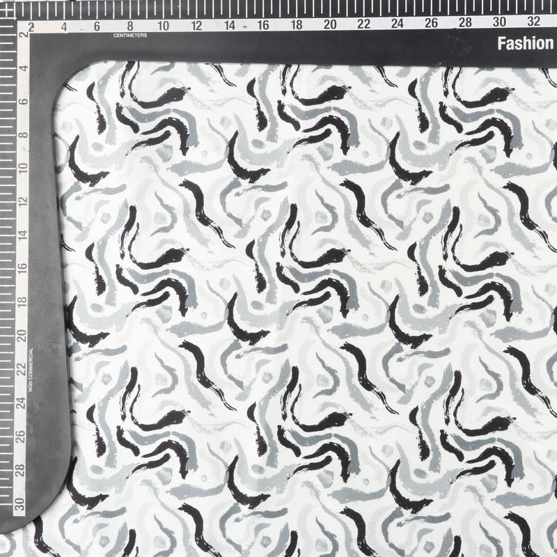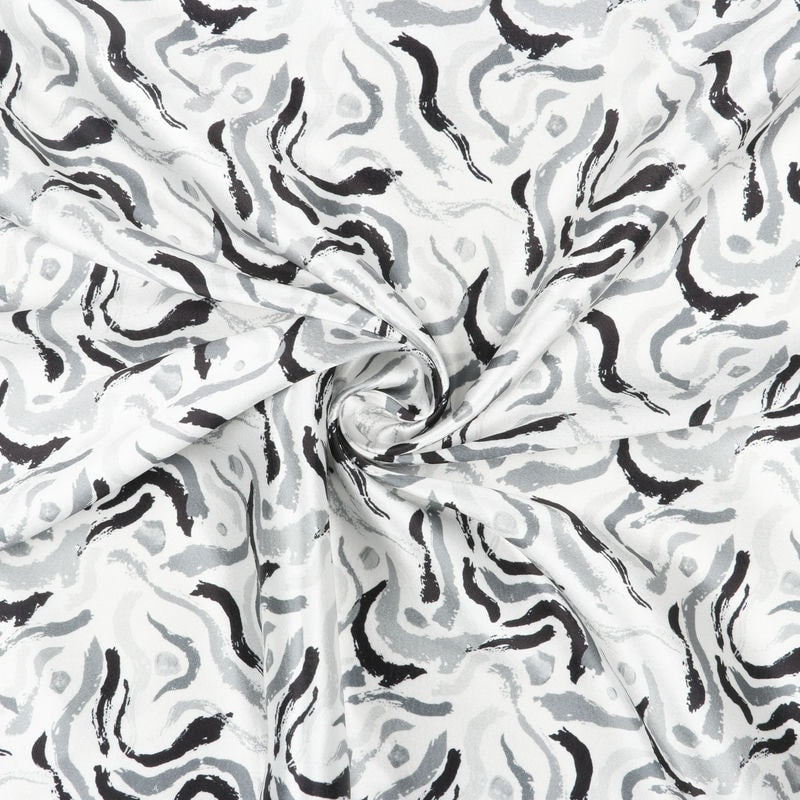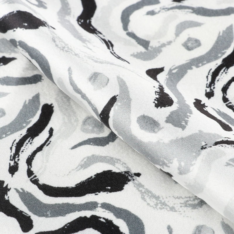 Light Grey And Black Abstract Pattern Digital Print Japan Satin Fabric