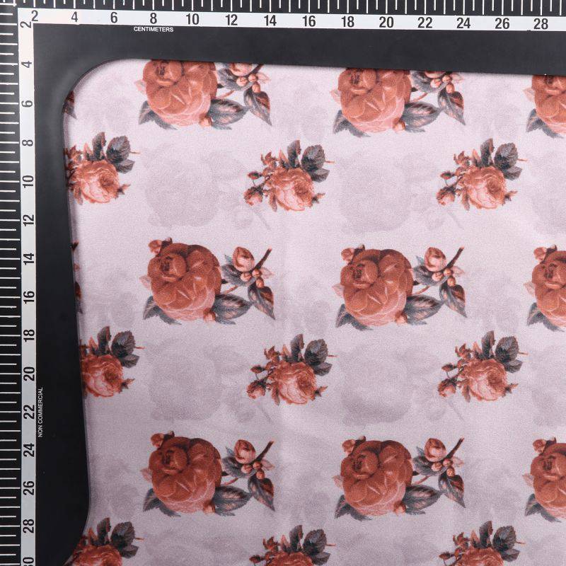 Light Lavender And Dark Red Floral Pattern Digital Print Japan Satin Fabric