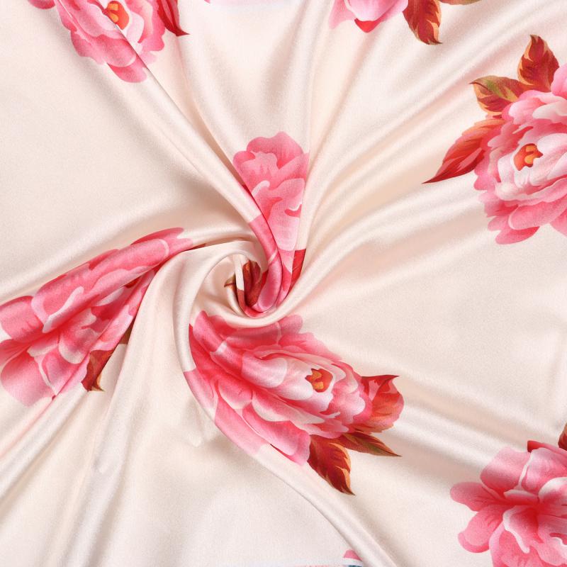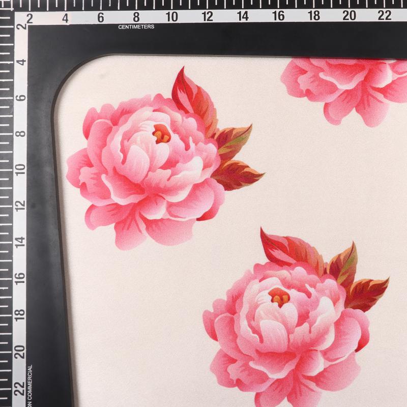Light Peach And Pink Floral Pattern Digital Print Japan Satin Fabric