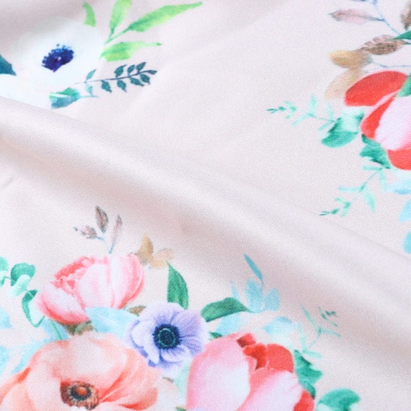 Light Peach And Pink Floral Pattern Digital Print Silk Satin Fabric