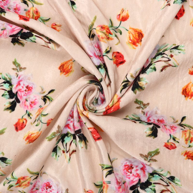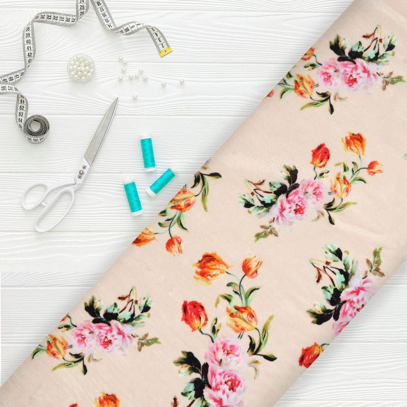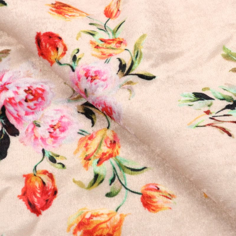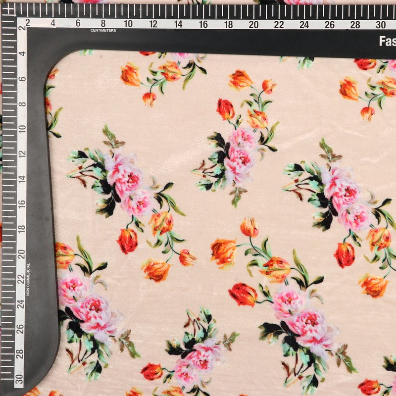 Light Peach And Pink Floral Pattern Digital Print Velvet Fabric