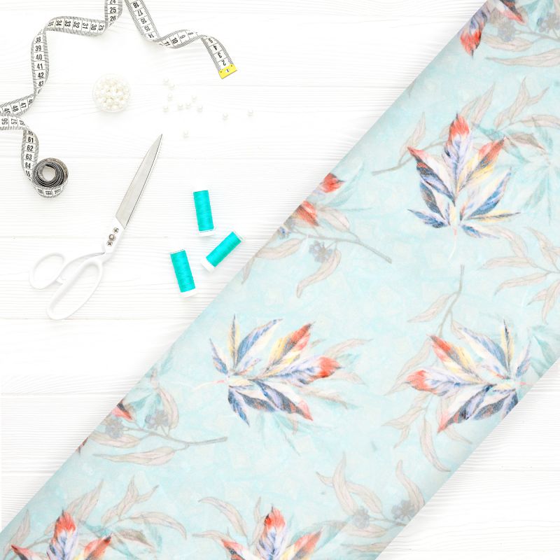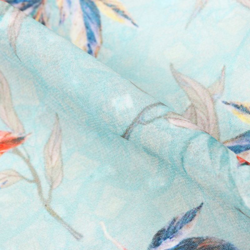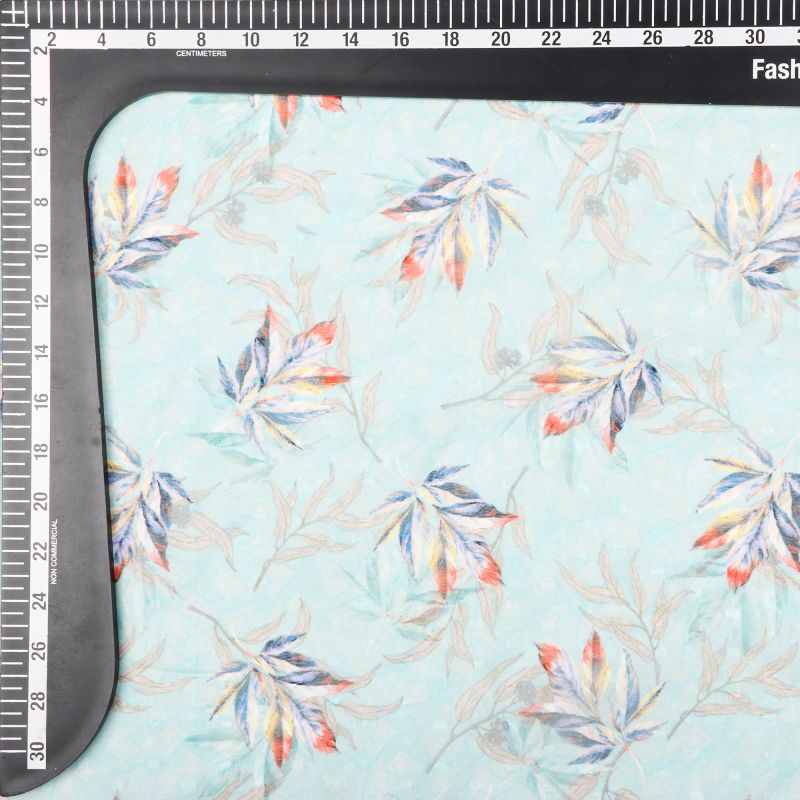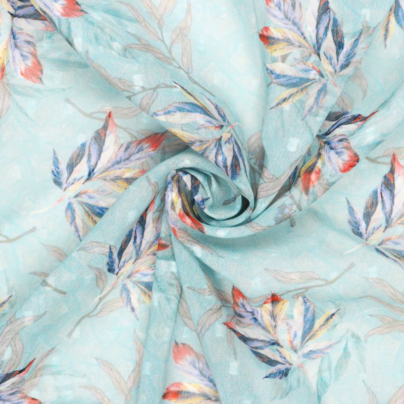 Light Turquoise And Dark Blue Leaf Pattern Digital Print Georgette Dobby Fabric