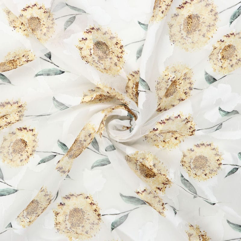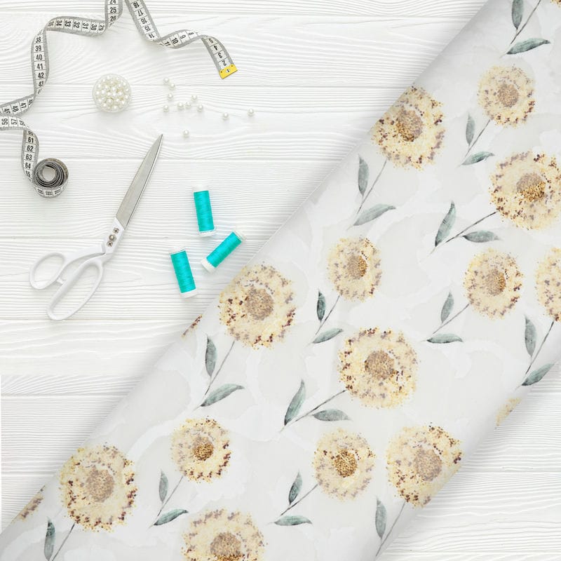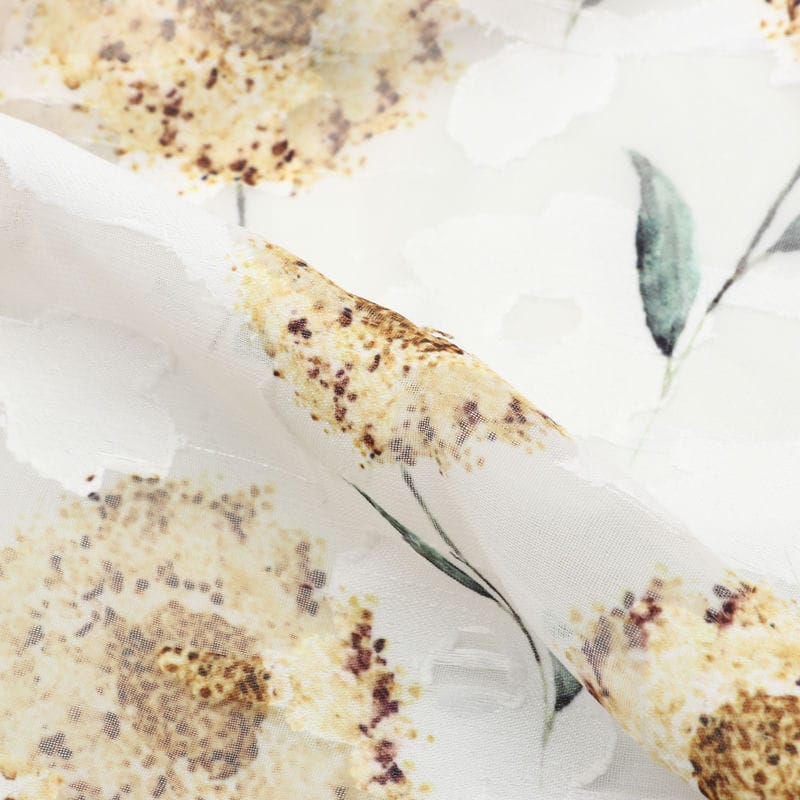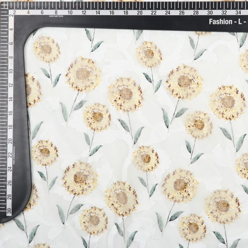 Light Yellow And White Floral Pattern Digital Print Georgette Jacquard Fabric