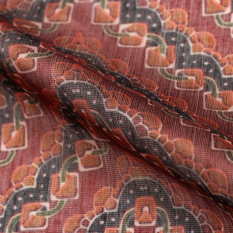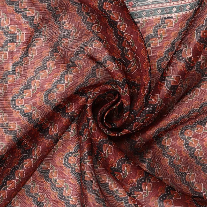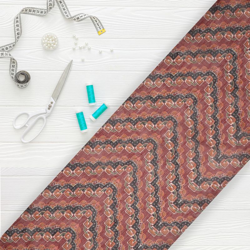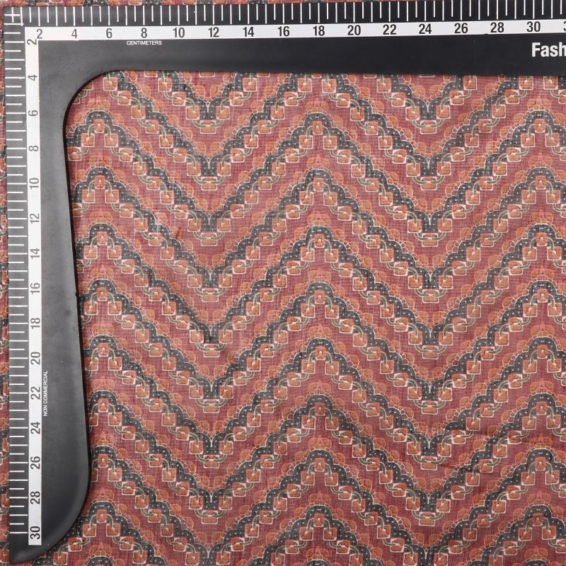 Maroon And Black Chevron Pattern Digital Print Chanderi Fabric