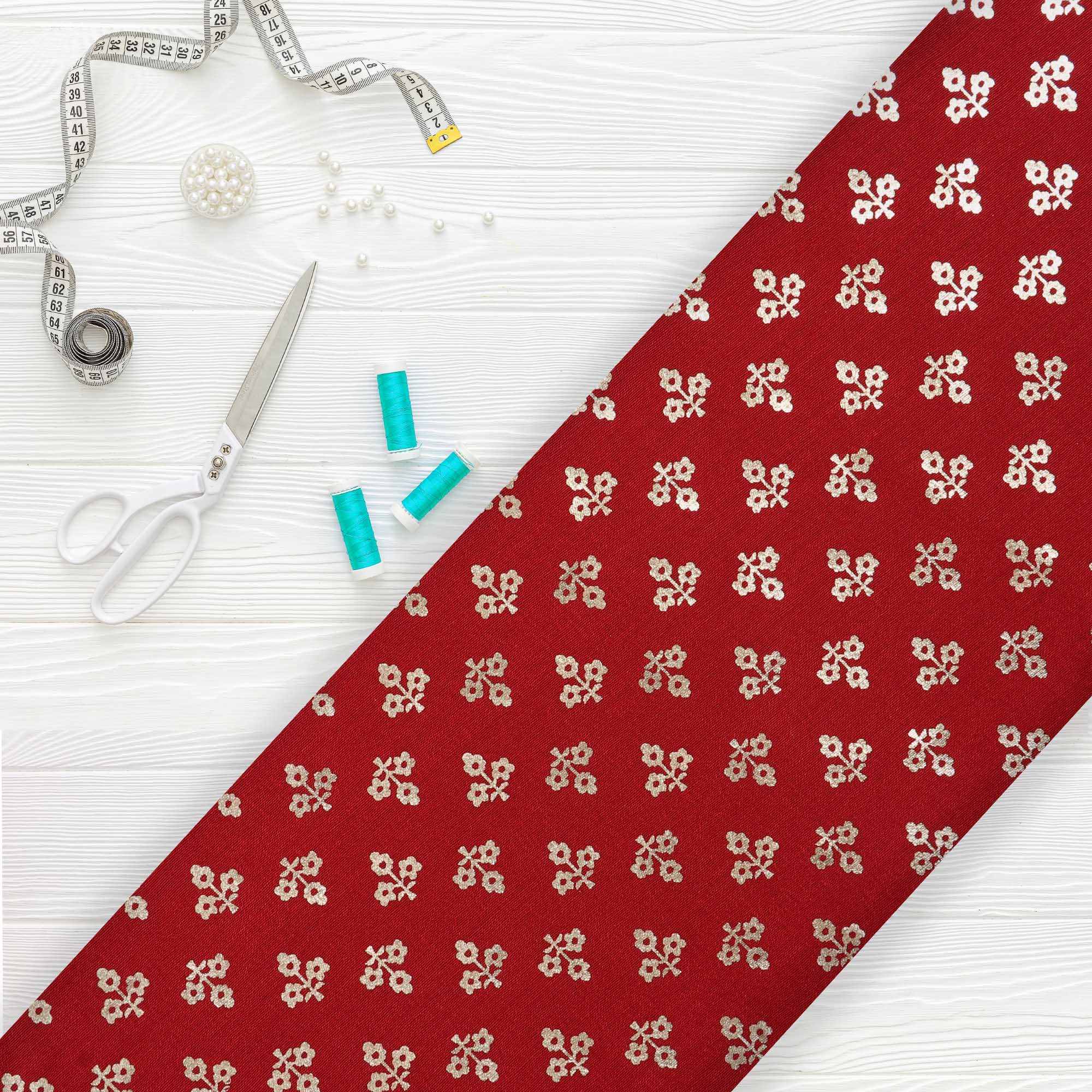 Maroon Foulard Pattern Dyed Jacquard Chanderi Fabric
